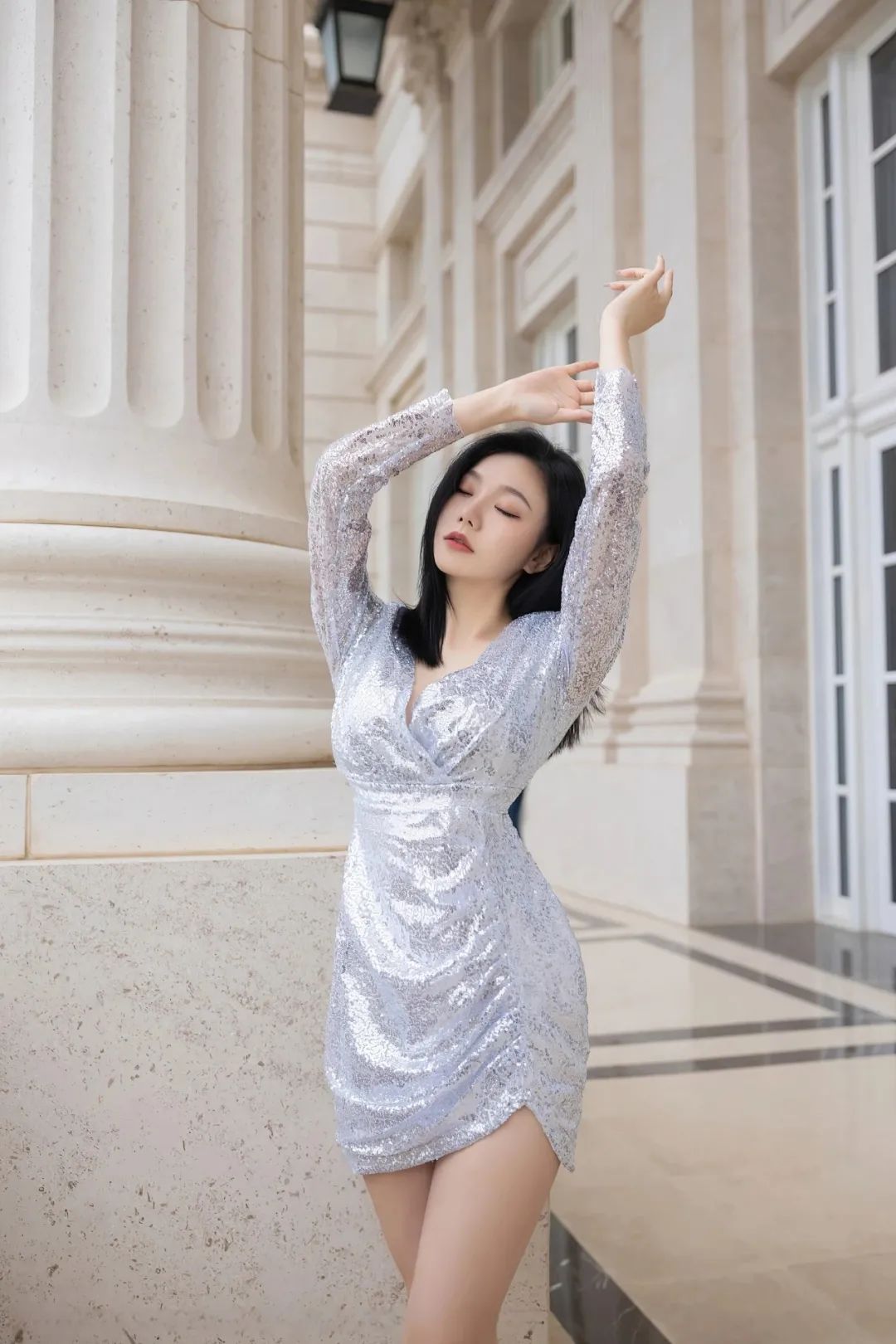 今天分享的内容是:安然小姐姐一袭银色抹胸裙,亮光闪闪,美得很稳定!
