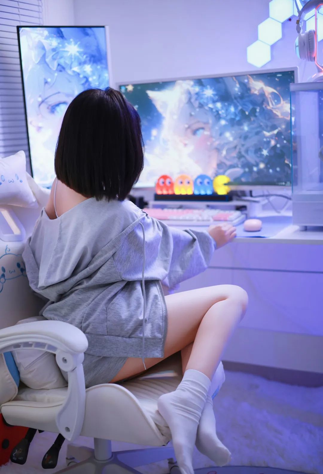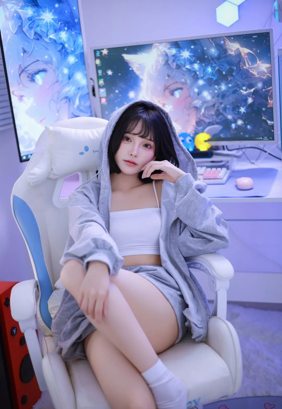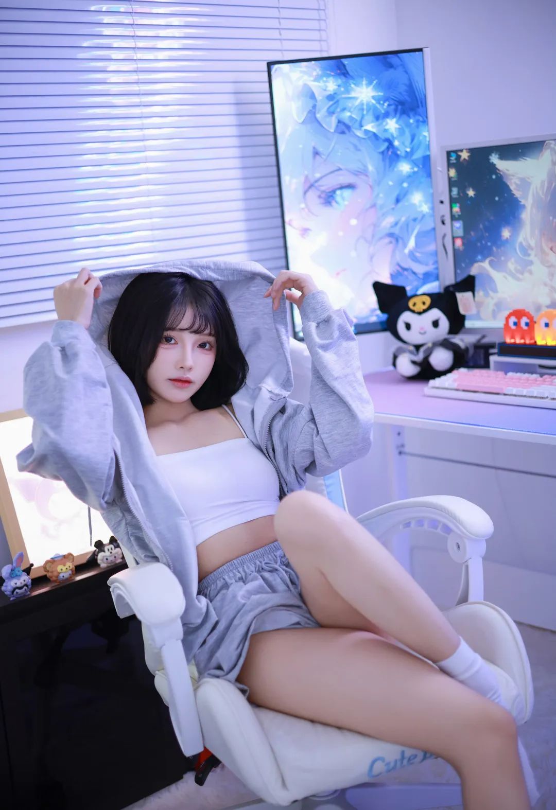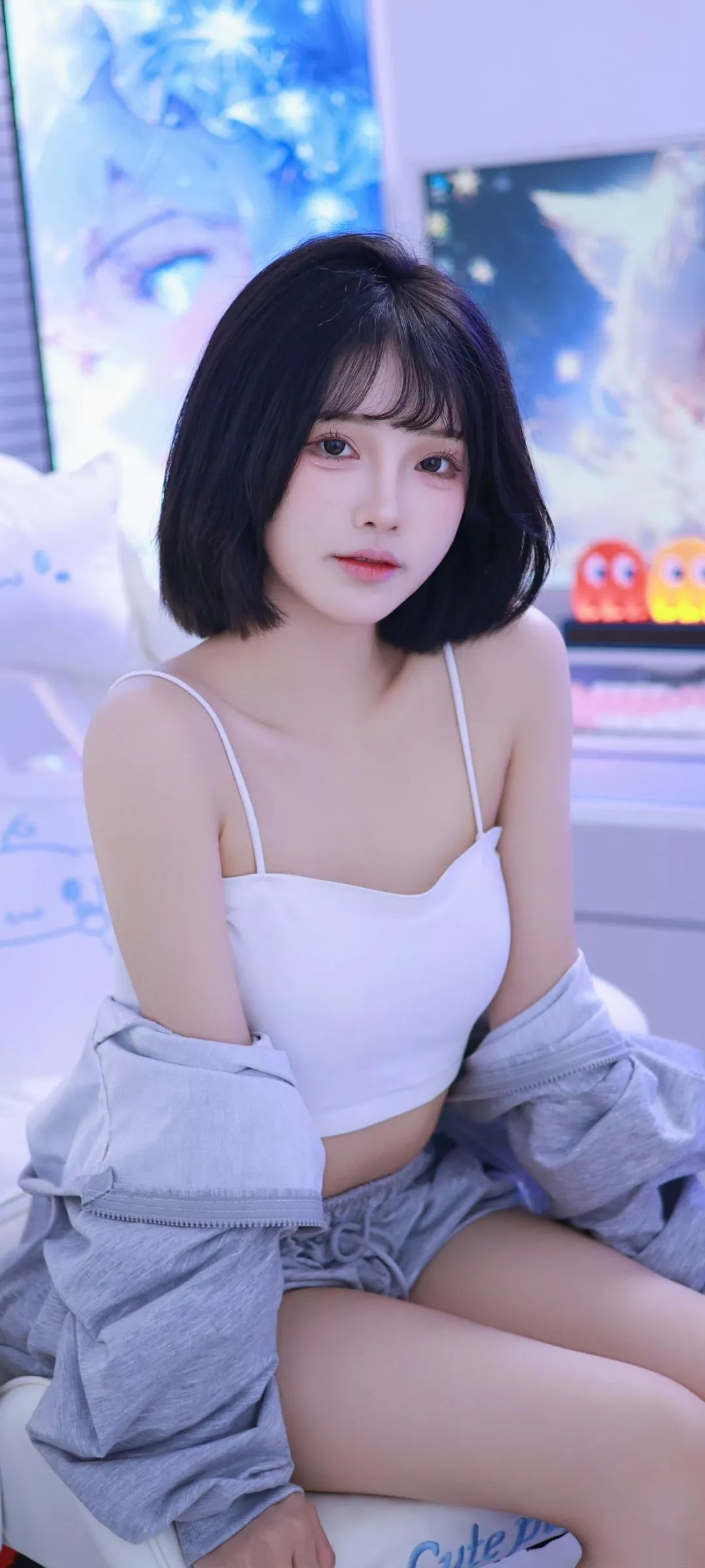 阿璇学妹是一位美女cos,休闲装真是特别美,灰色外套短裤,白色背心简约又不失时尚感,真的又美又可爱。出镜:阿璇学妹