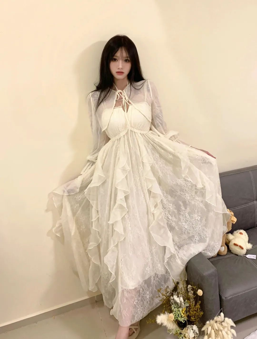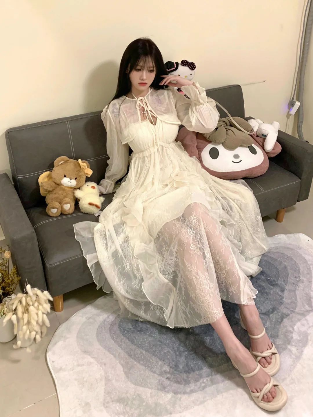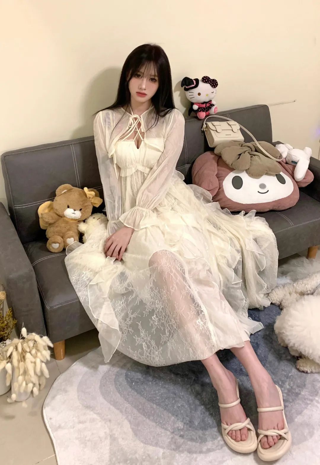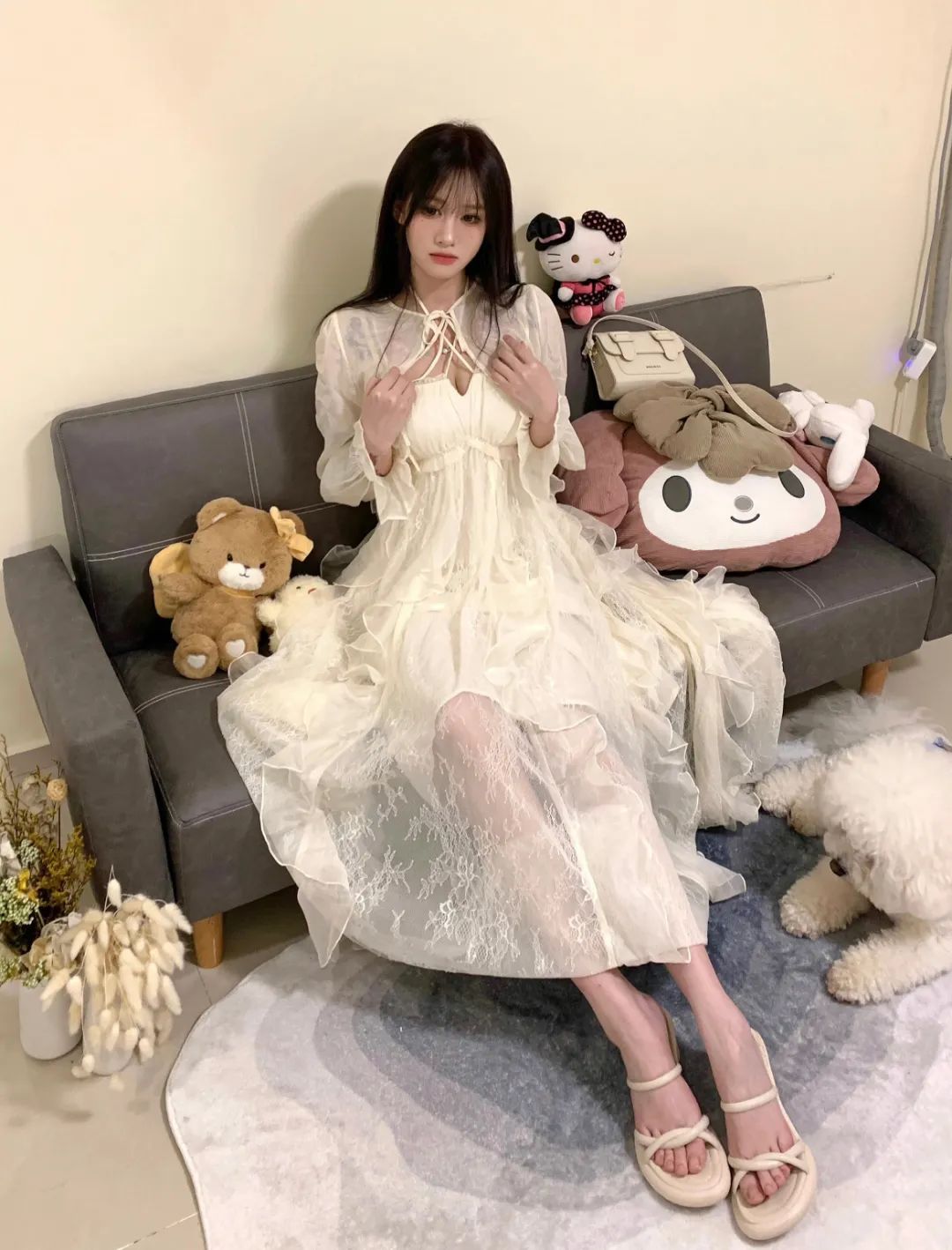 春末国风甜妹!奶白旗袍直接美…