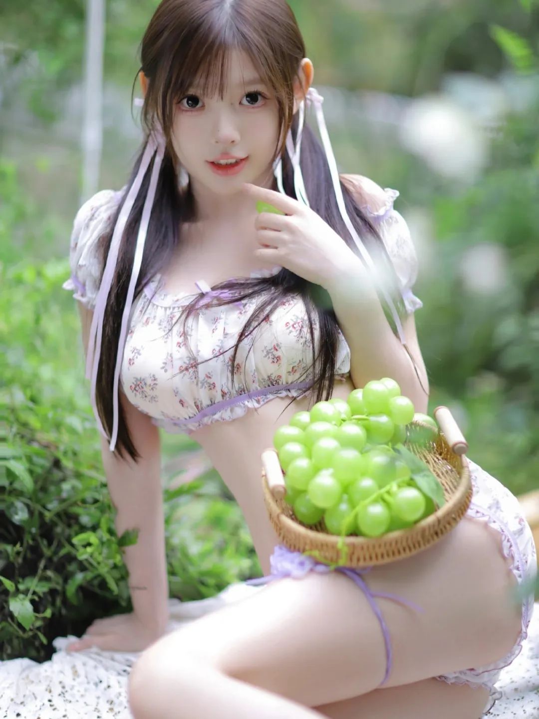 我手中捧着一篮子新鲜采摘的葡萄,那些葡萄宛如一颗颗紫色的宝石,晶莹剔透,散发着诱人的香气。阳光透过树叶的缝隙洒在我的身上,斑驳的光影在我身上跳跃,带来一丝丝温暖和惬意。