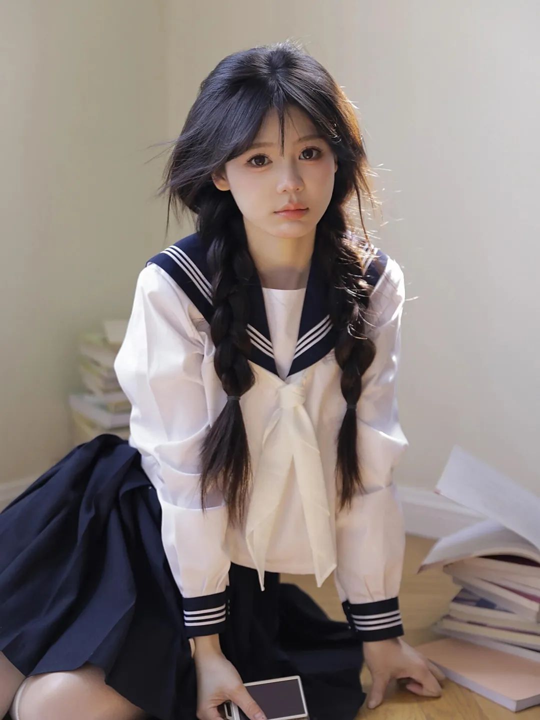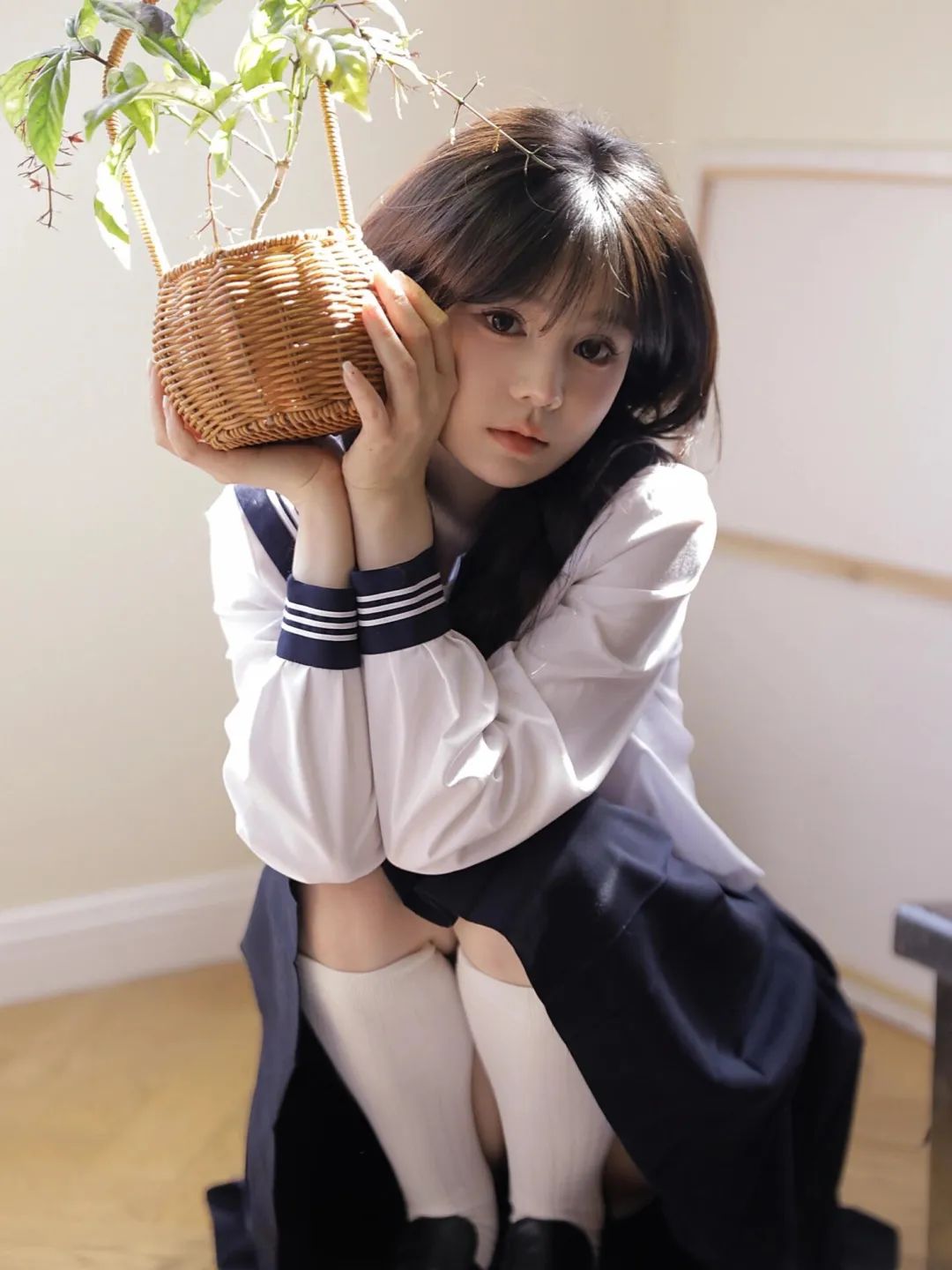 初中部学妹COS,白丝过膝袜,简直太太太爱了