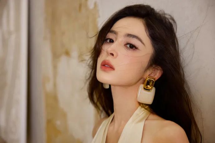 低胸设计巧妙地展露出娜扎精致的锁骨和优雅的颈部线条,既性感又不失端庄。这样的设计不仅凸显了她的身材优势,更在视觉上拉长了颈部比例,使整个上半身看起来更加修长。同时,低胸设计也打破了米色可能带来的单调感,为整体造型增添了一抹亮点。
