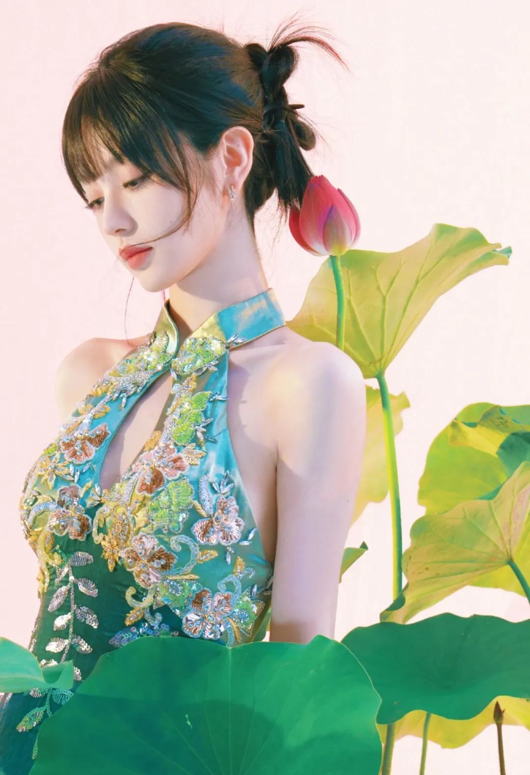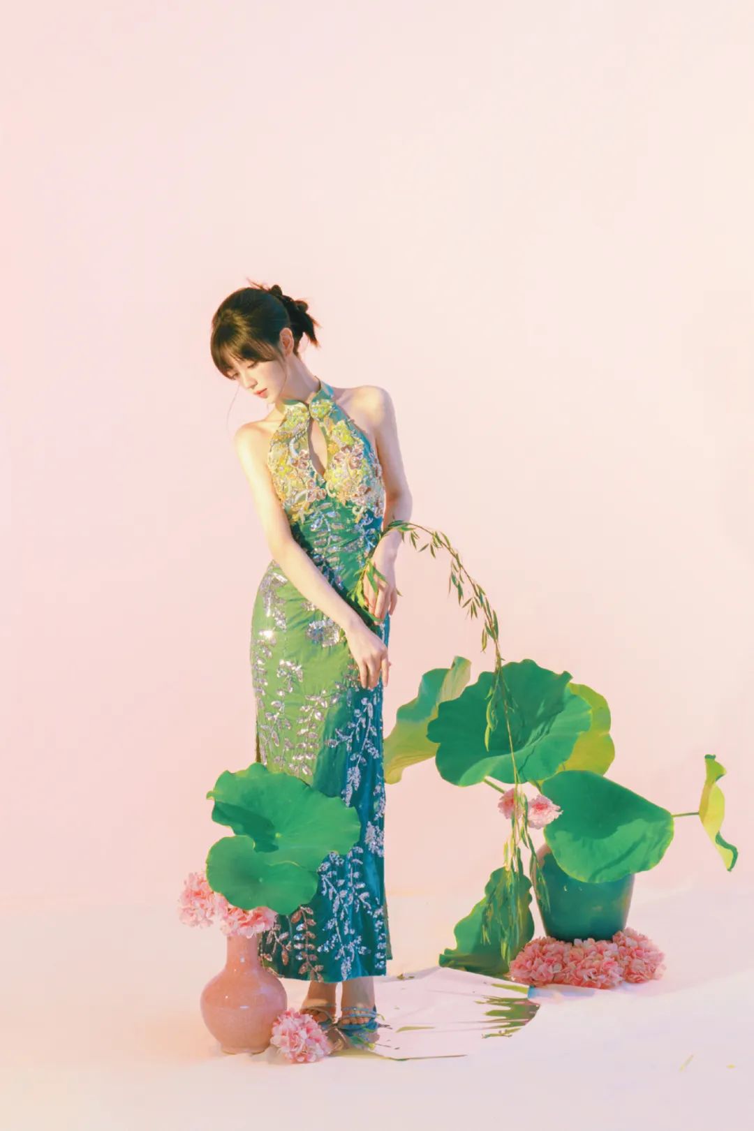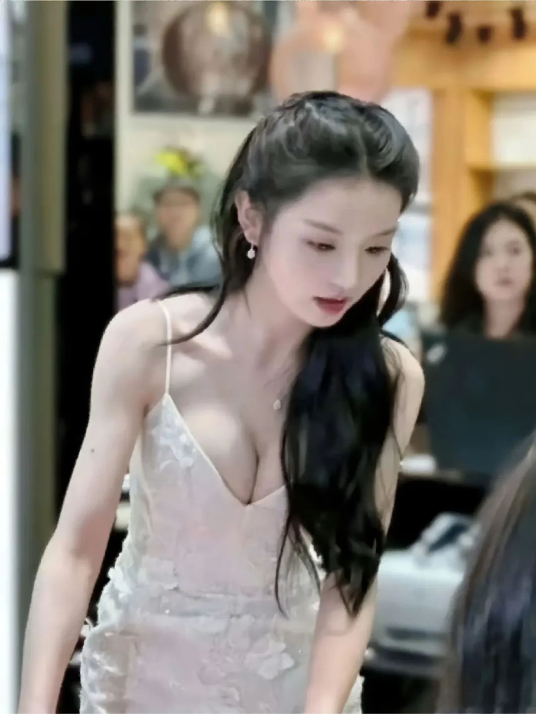 这种改良版无袖旗袍,更是把田曦薇的好身材展露得刚刚好。