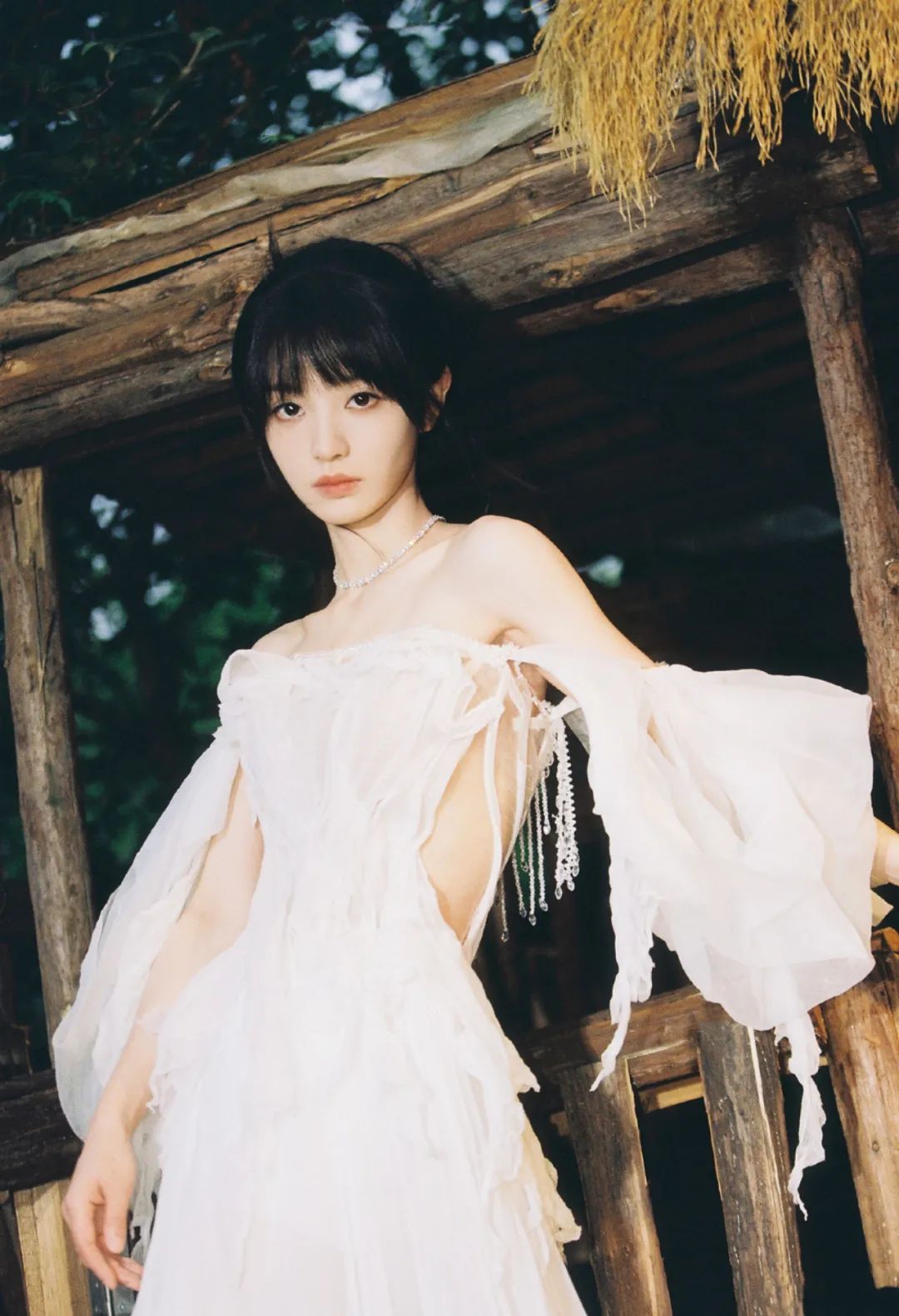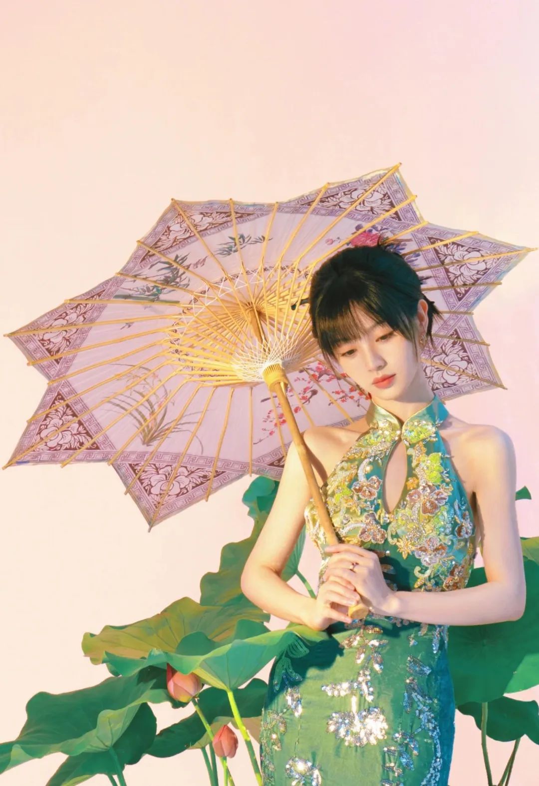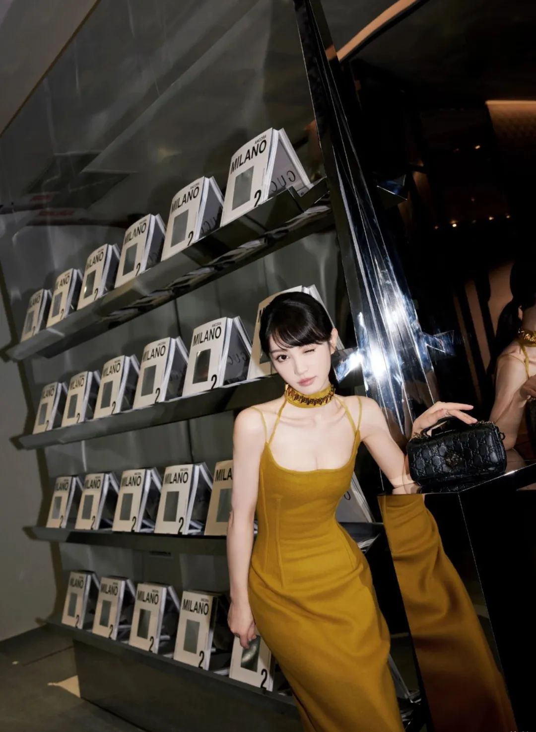 这种改良版无袖旗袍,更是把田曦薇的好身材展露得刚刚好。