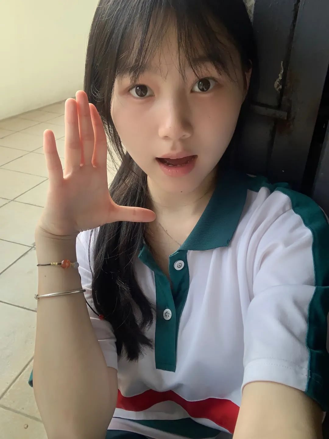 高颜值可爱的校服女孩,自信又自恋。