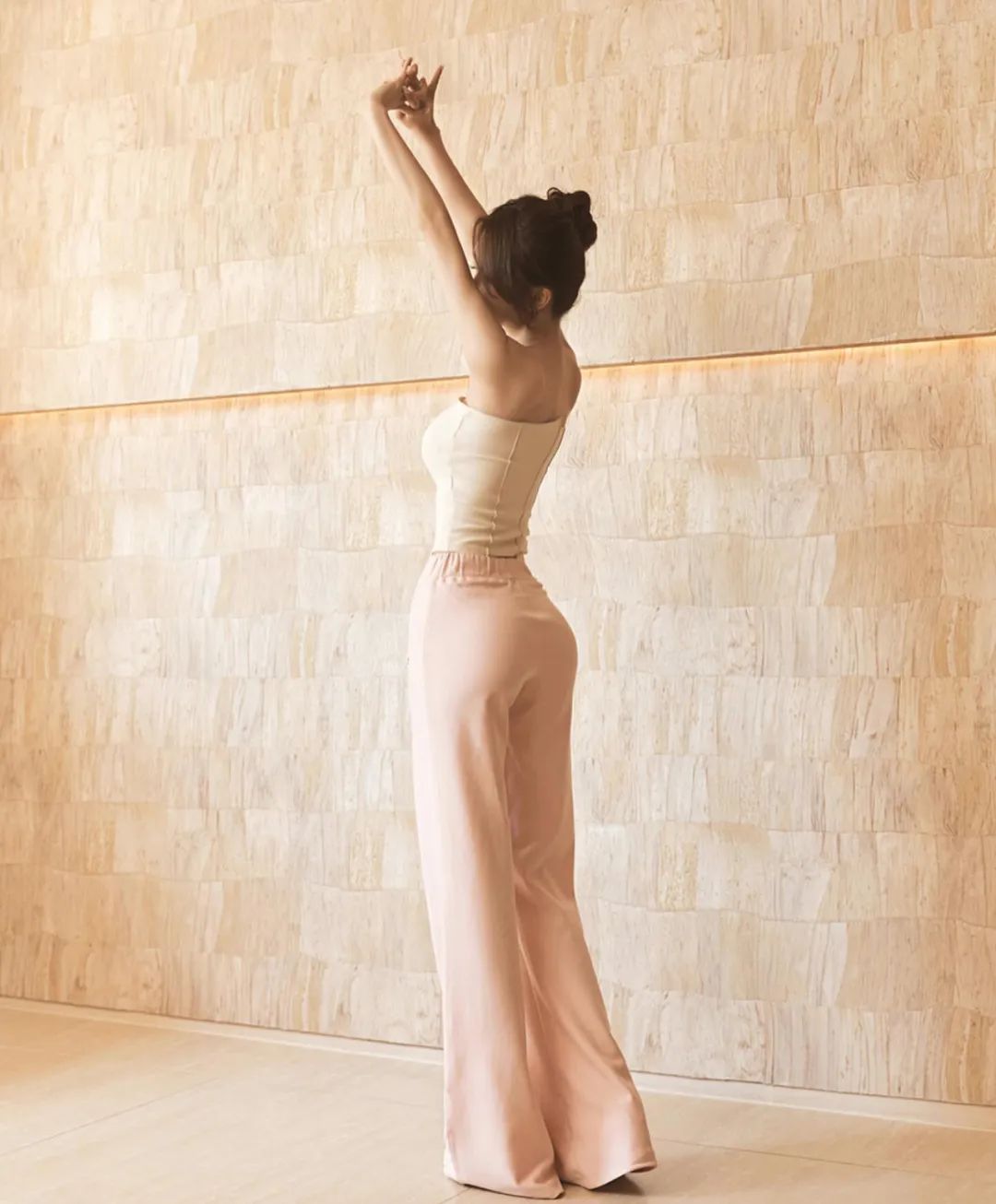 她的身材非常纤细挺拔,全身都是细长的柳枝,舞动青春