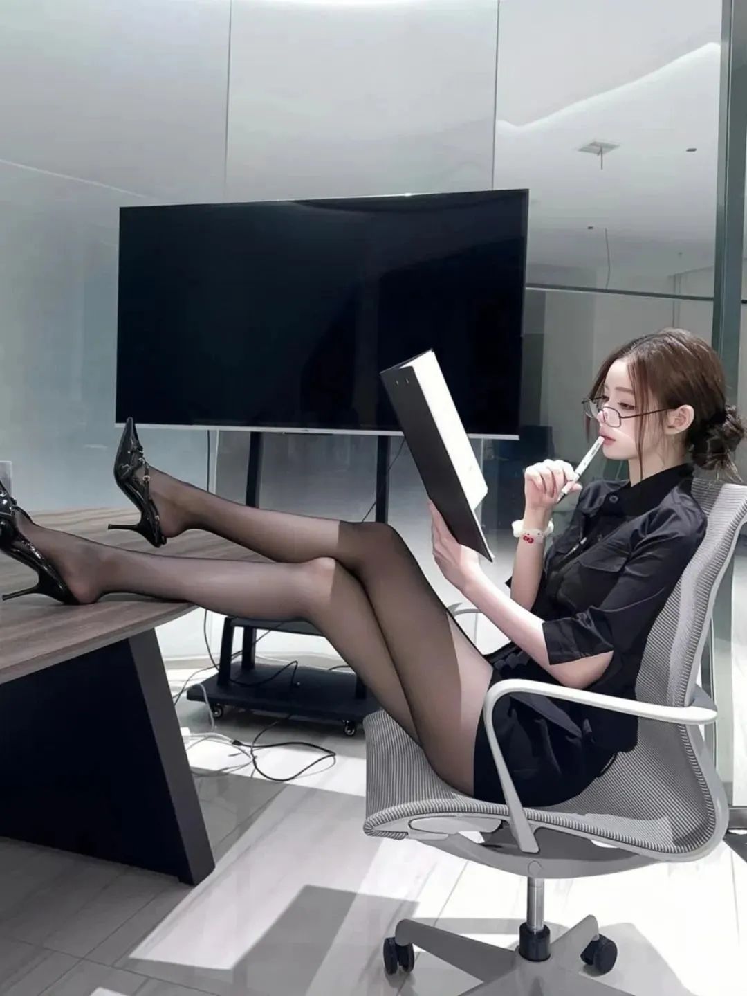 今天分享的内容是:黑丝短裙大长腿,这个女同事人见人爱!每天加班都愿意!