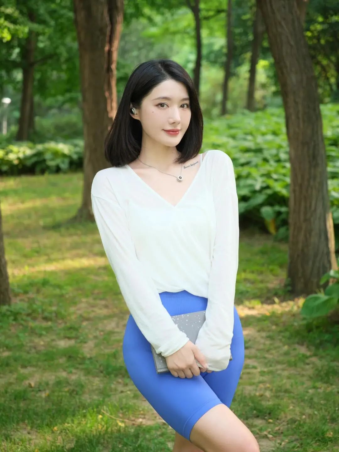蓝色短裤,气质美女
