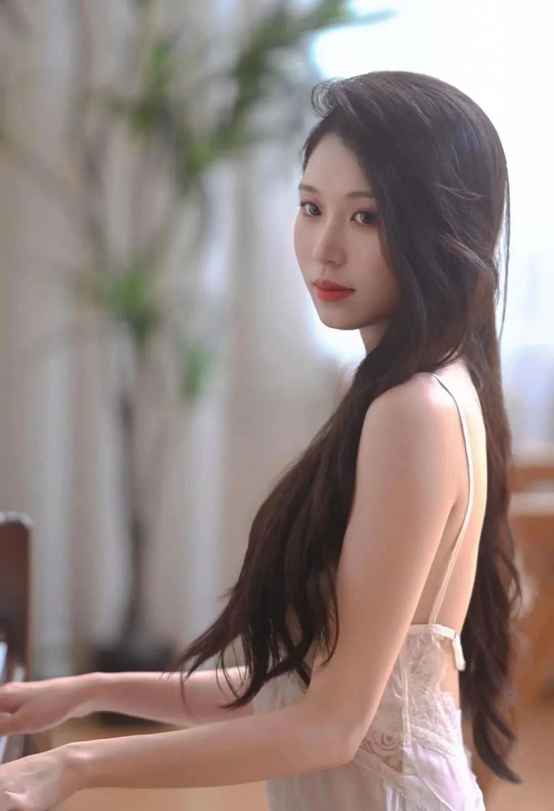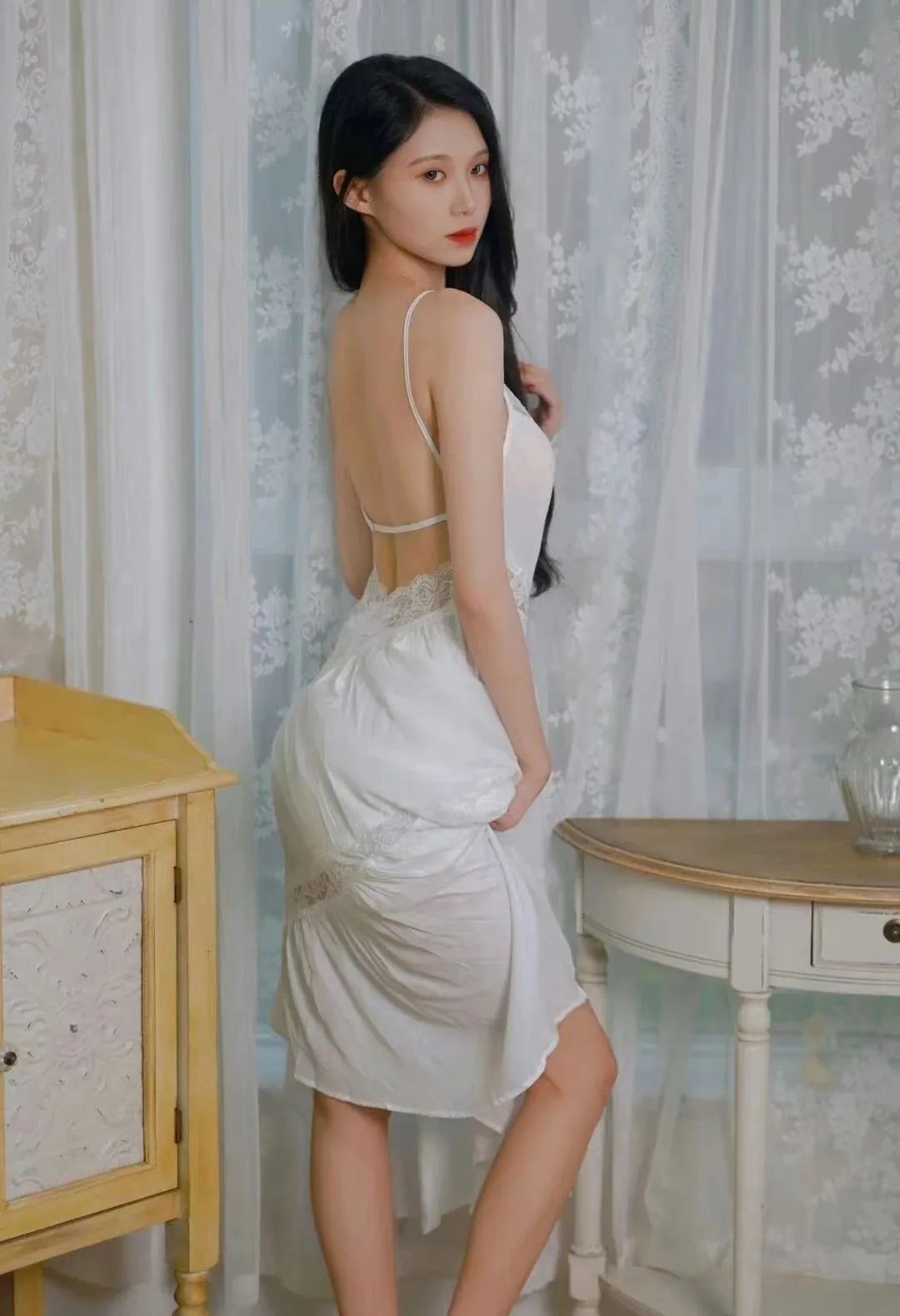 蕾丝露背吊带裙,秀出性感美背,身材真顶,谁能不迷糊?