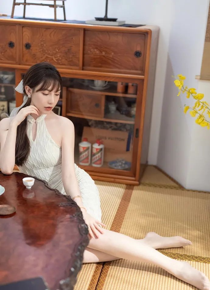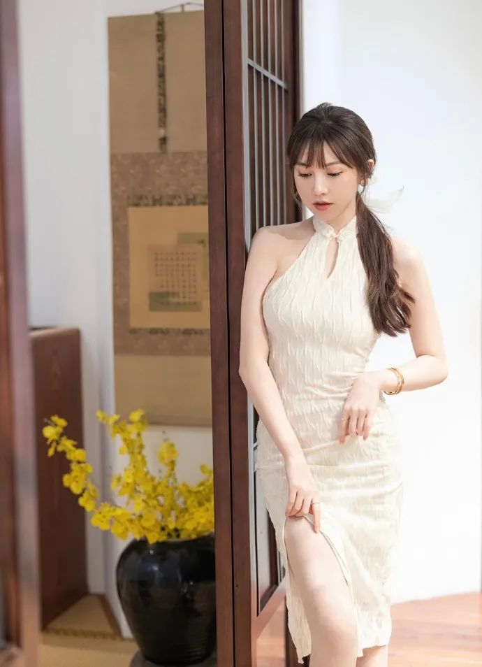 刘奕宁的这组写真照片真是美翻了!她身着一袭简约而不失优雅的白色无袖连衣裙,裙身褶皱设计巧妙修饰身形,膝盖上方的开叉更是增添了几分性感与灵动。细长的项链轻轻垂落胸前,与单边耳环相映成趣,既简约又不失精致。披肩长发随风轻扬,与室内温馨宁静的氛围完美融合。这样一组穿搭,无论是约会还是日常出行,都能让你轻松成为焦点。