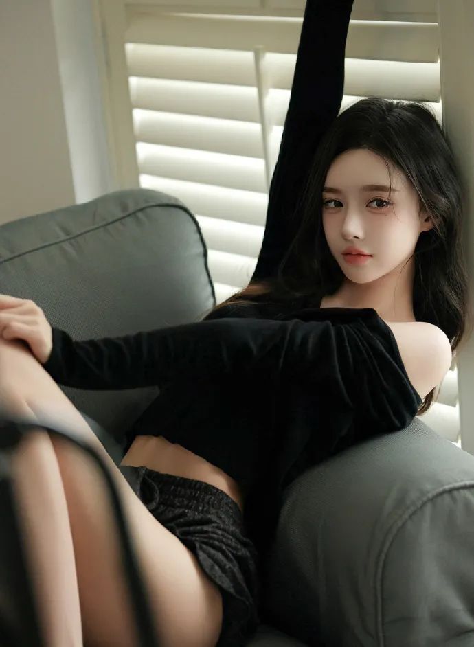小美橙身穿黑色上衣搭配同色系短裙,简约而不失时尚感。上衣的修身设计完美勾勒出她的曼妙身姿,短裙则巧妙地展现了她的修长美腿。棕色的长直发自然垂落,为整体造型增添了几分柔美与温婉。。