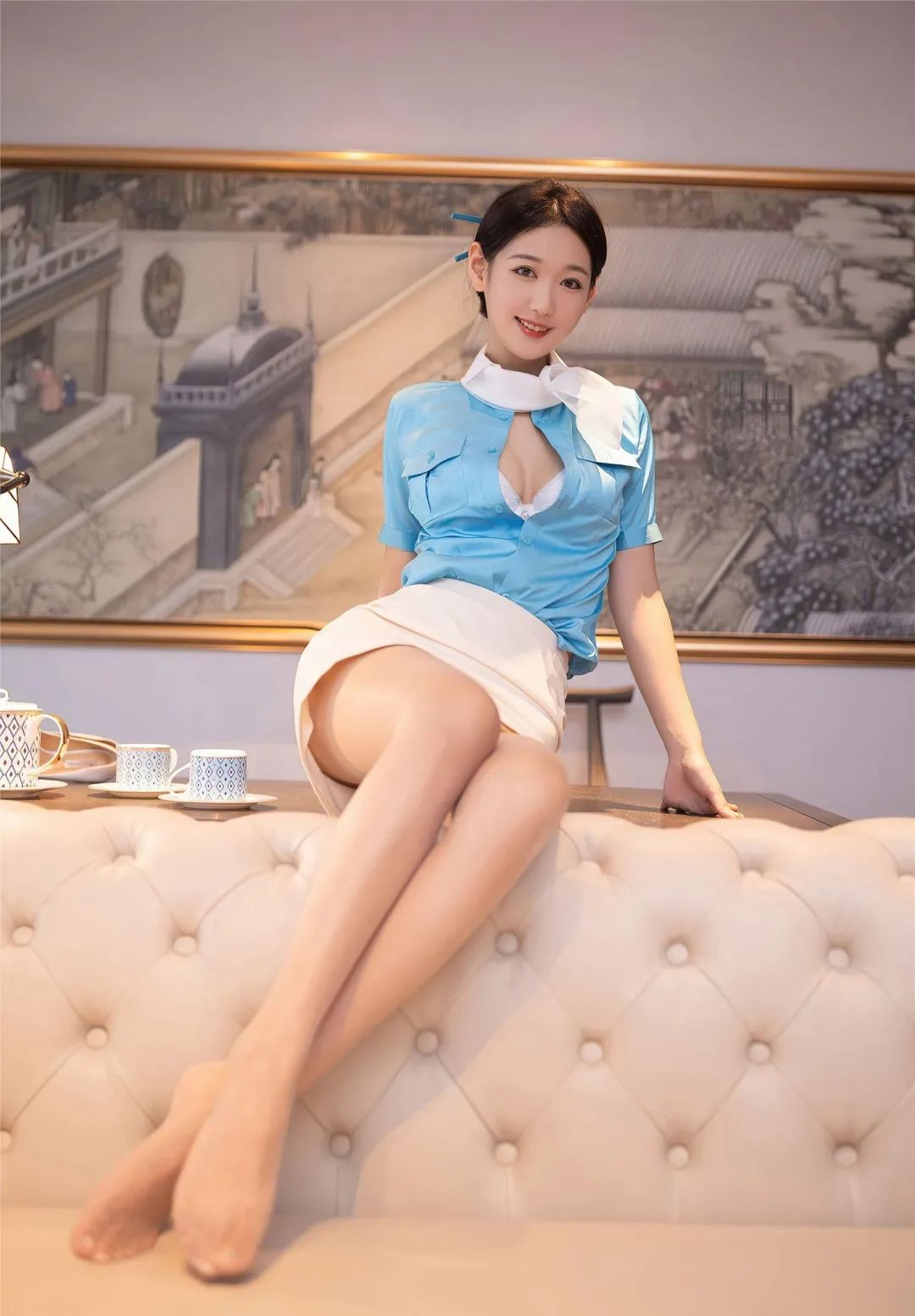 美腿丝袜,空姐制服:唐安琪
