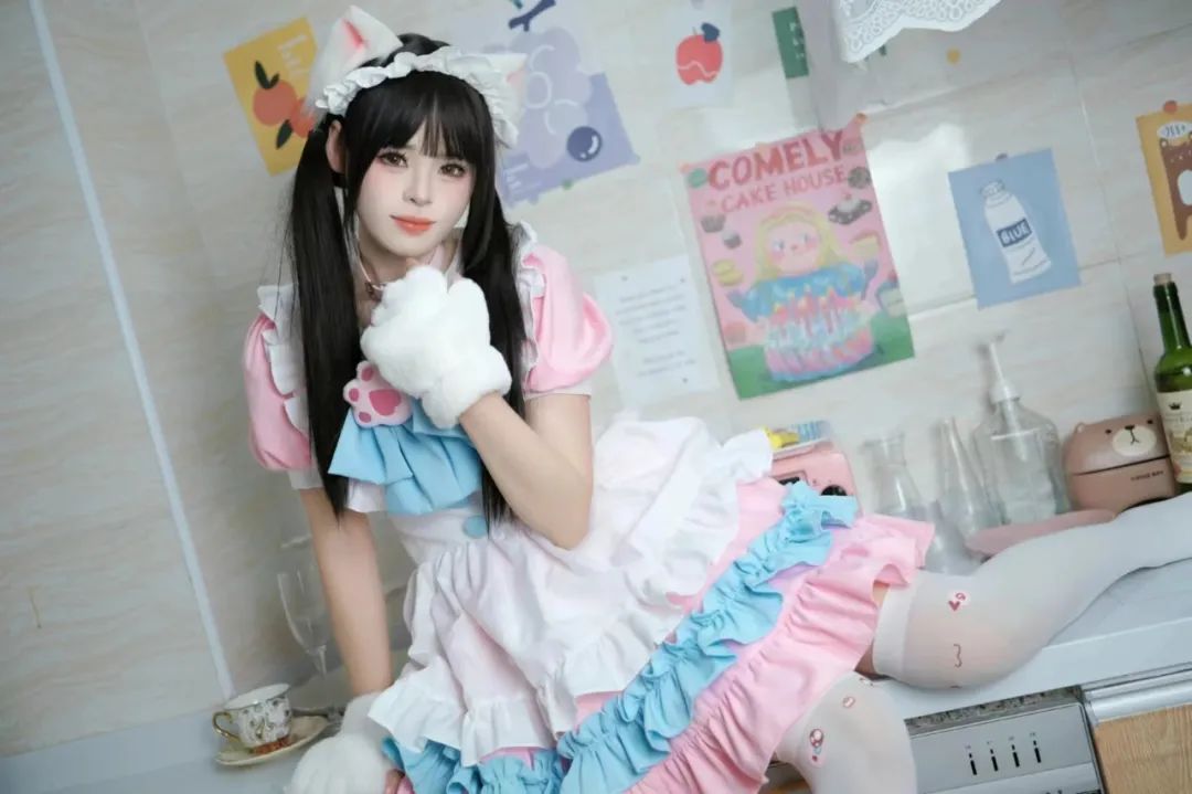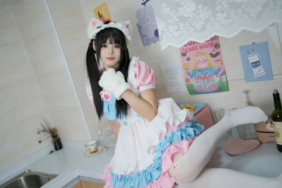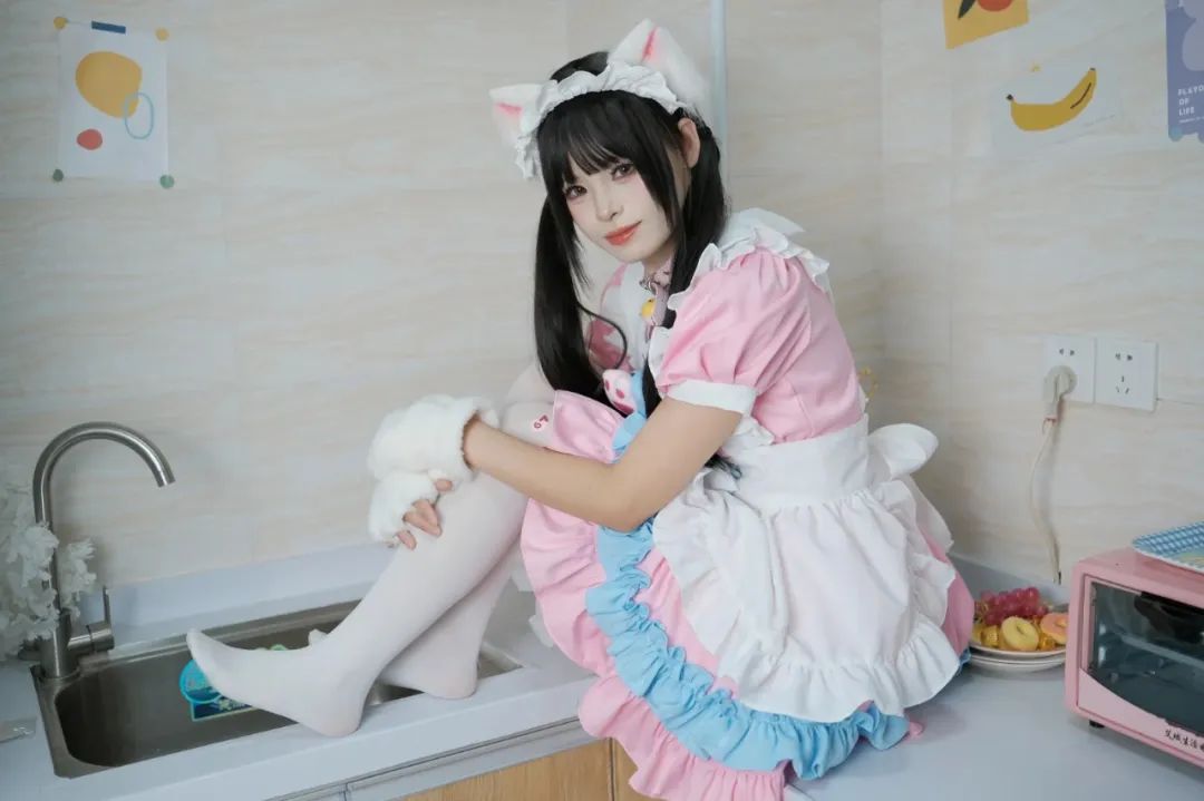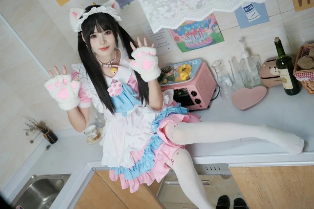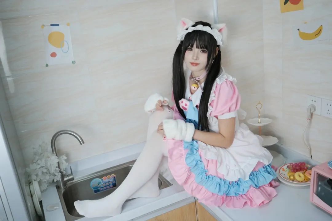 女仆COS,玉足白丝,猫耳萌妹,简直太迷人了。