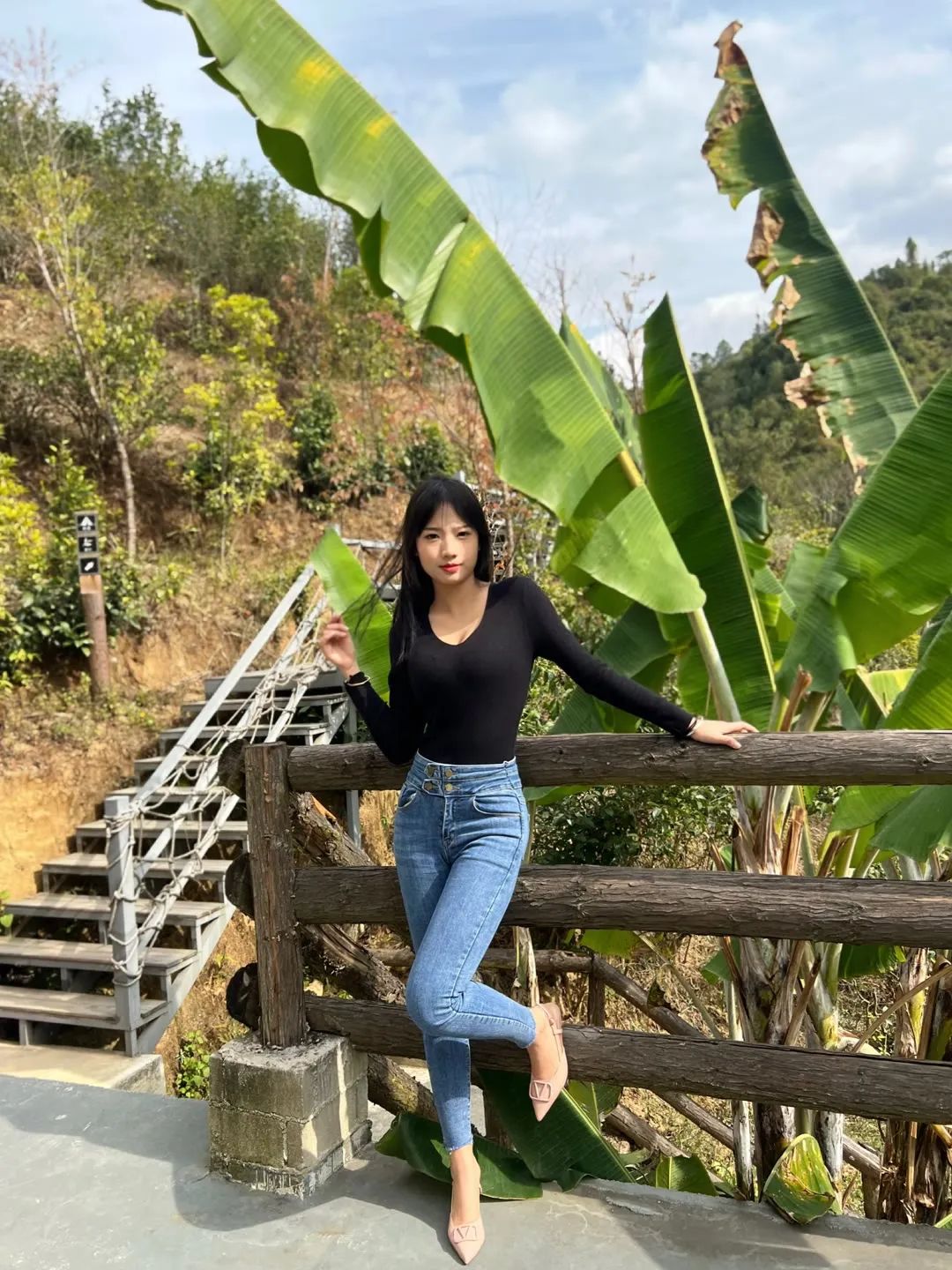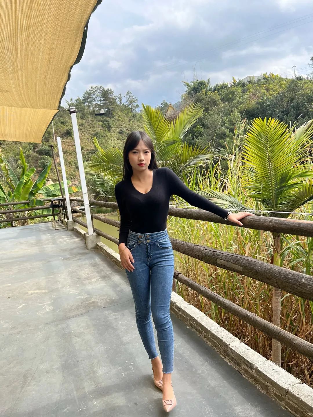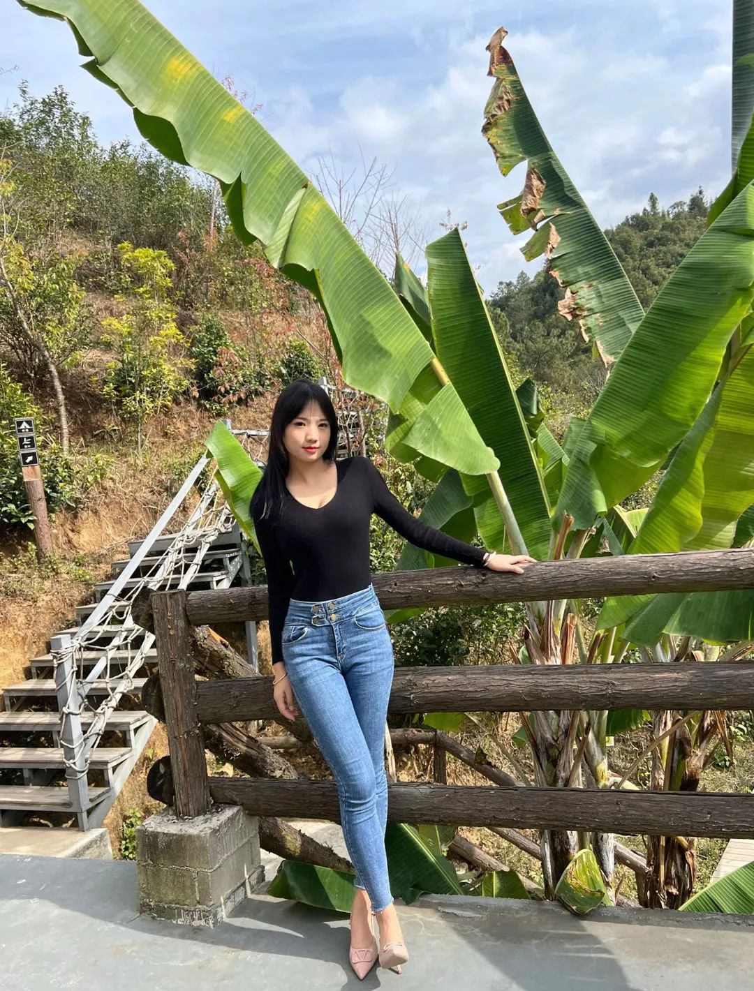 户外拍照风景要好,着装也要好,不然自己就尴尬了