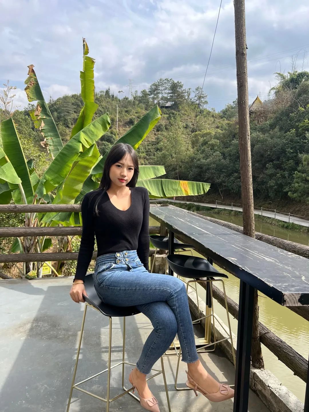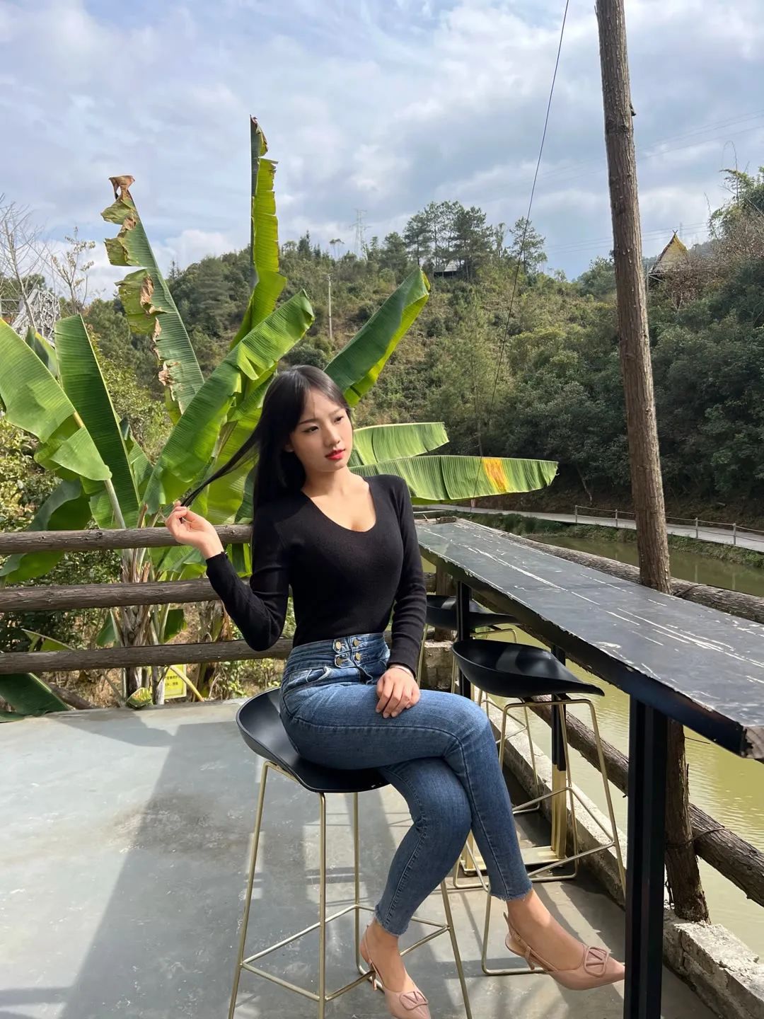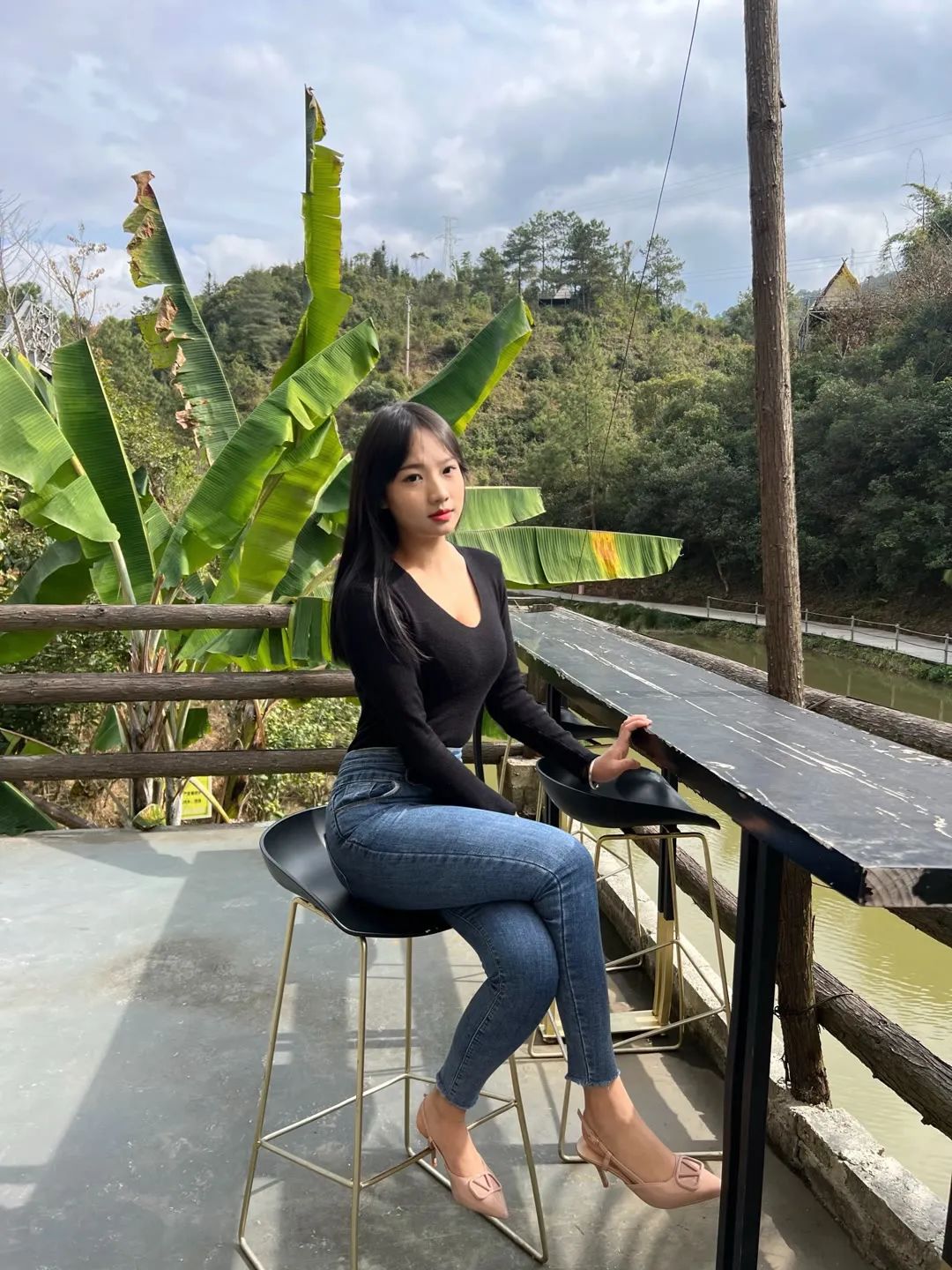 户外拍照风景要好,着装也要好,不然自己就尴尬了