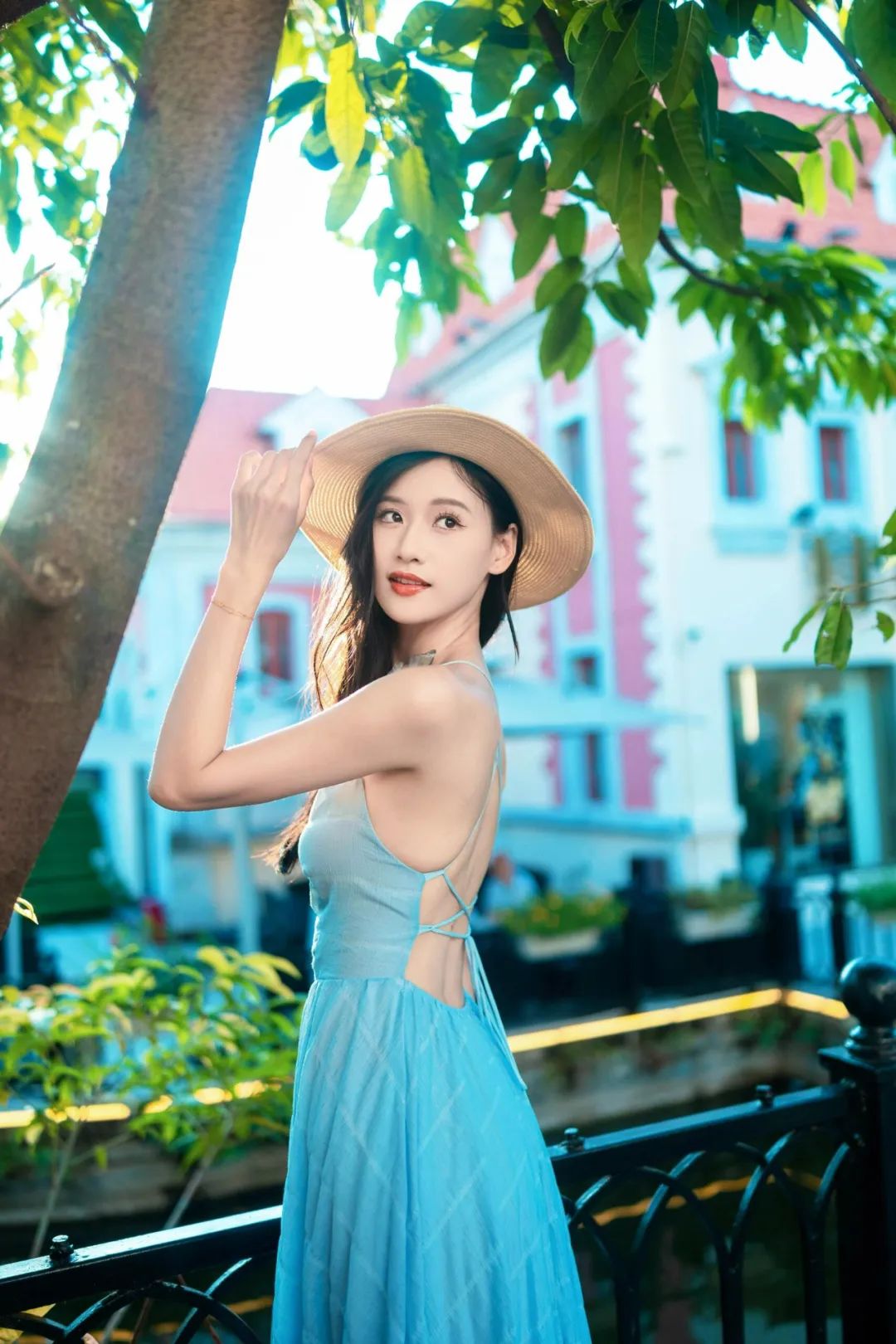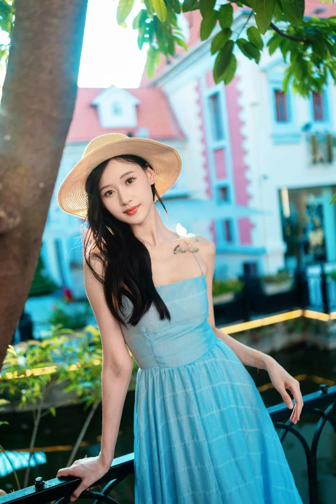 这样的姿势可以展现你的身体线条,微倾的身体和撑栏杆的手形成了一个有趣的角度,让照片更加有层次感。同时,这个姿势也可以让你看起来更加自信和随意。