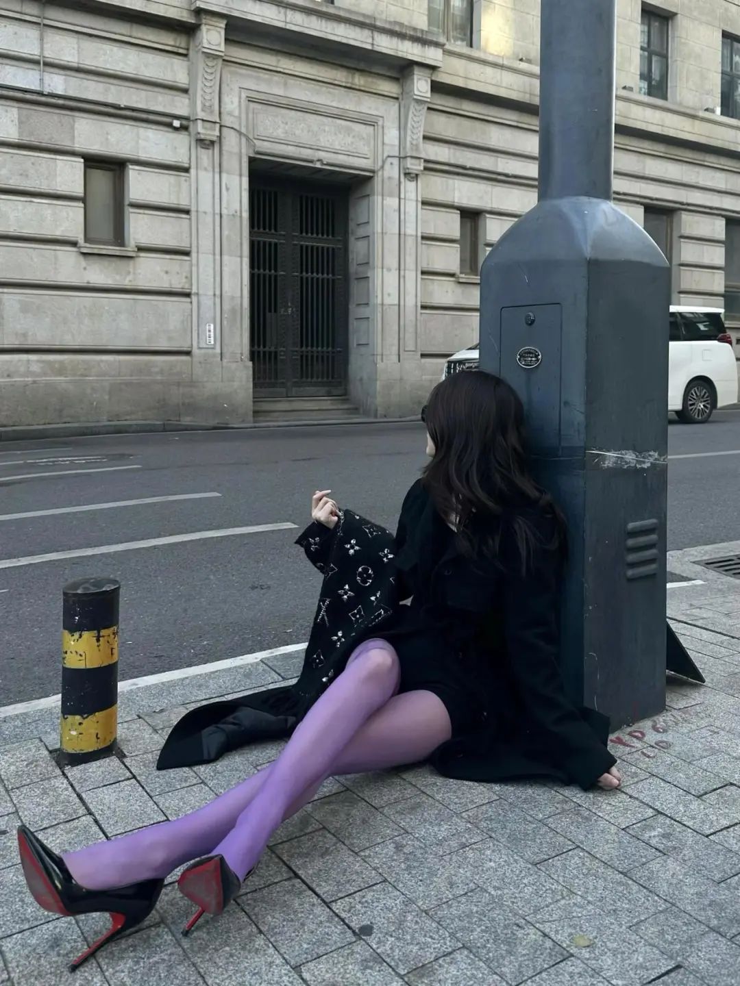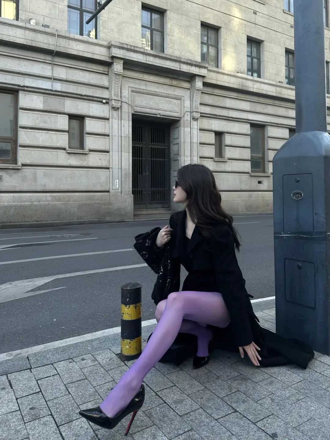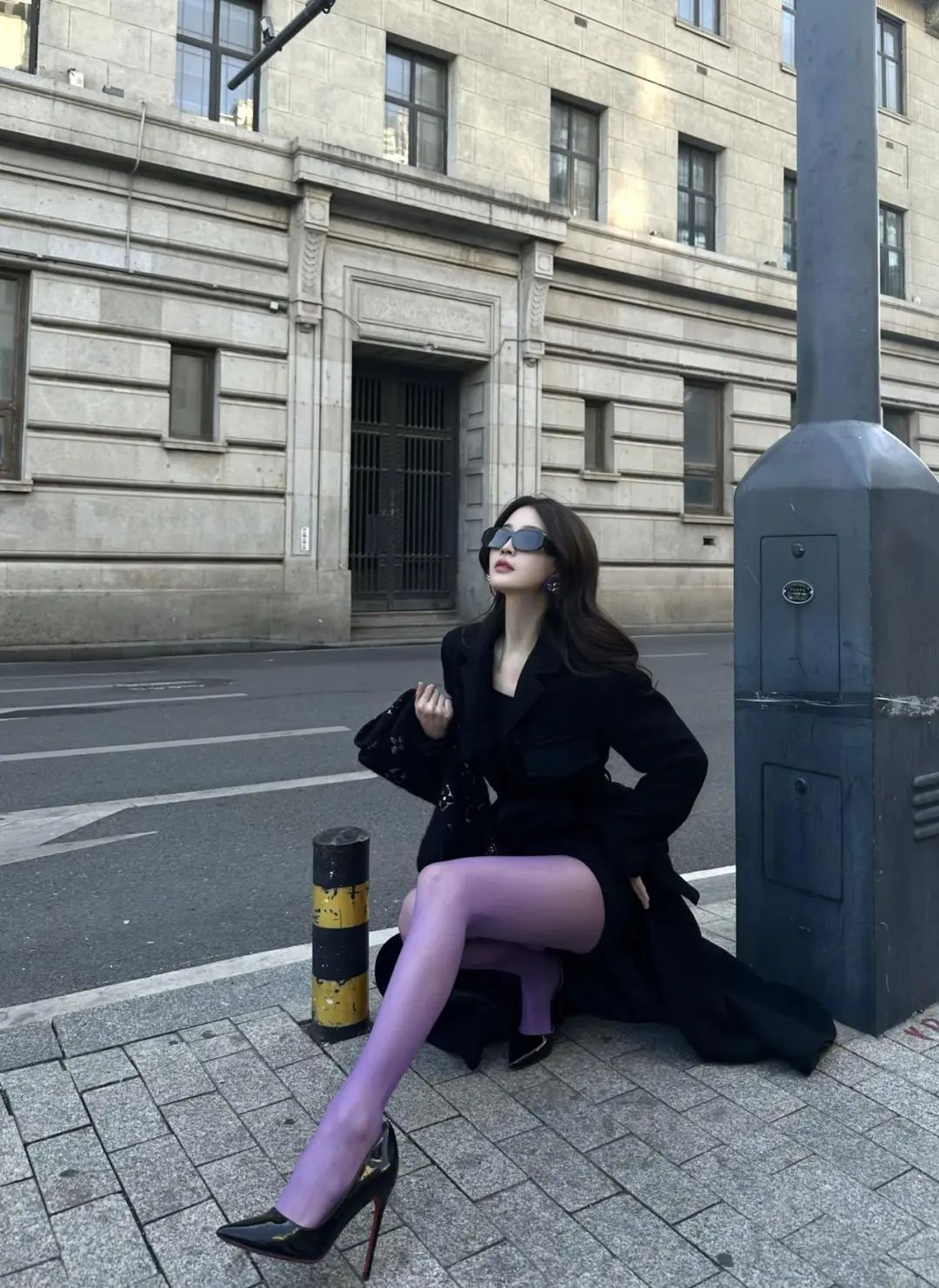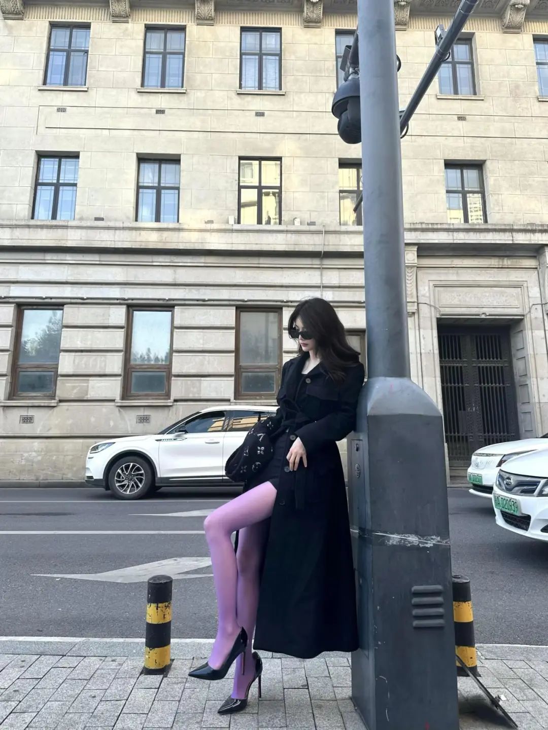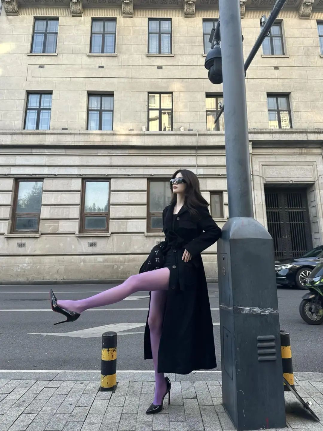 朋友爱看| 气质穿搭!黑色大衣+紫色+高跟
