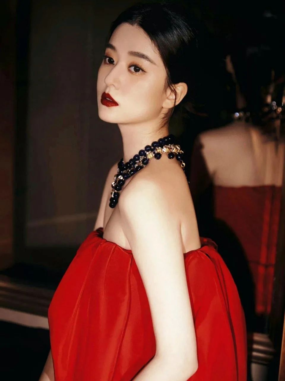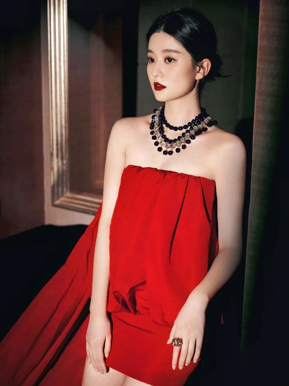 背景方面,暗色调的环境为这组写真增添了一抹神秘色彩,与乔欣身上的红色连衣裙形成了强烈的视觉冲击力,使得整个画面更加引人入胜。在这样的氛围下,乔欣仿佛成为了一位从画中走出的女神,每动作、每眼神都充满了故事感。