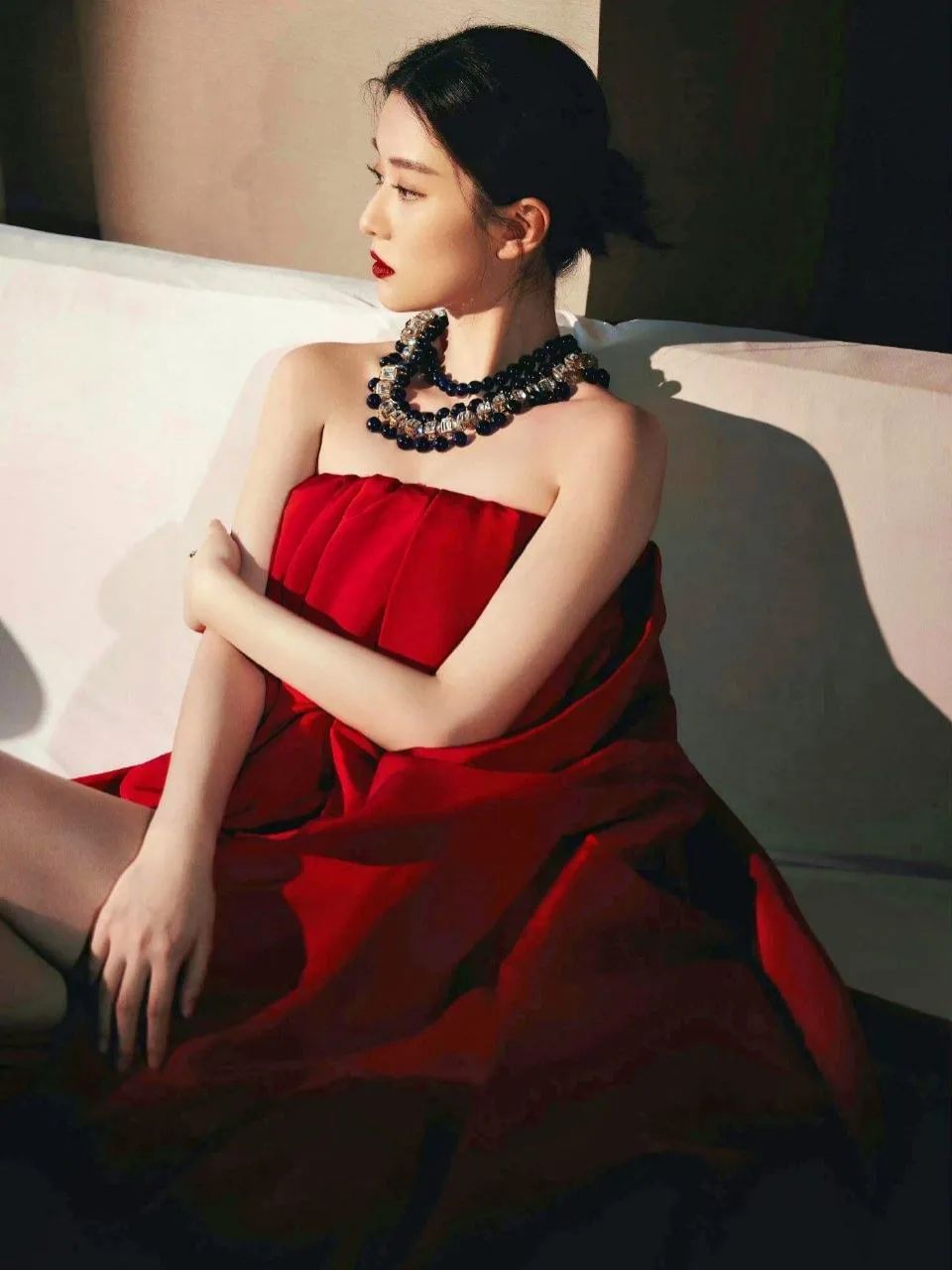在这组写真中,乔欣以一袭红色无袖连衣裙惊艳亮相,瞬间捕获了所有人的目光。红色,这个充满热情与活力的颜色,被乔欣完美驾驭,不仅凸显了她白皙的肌肤,更在暗色调的背景下显得格外耀眼。连衣裙的设计简约而不失高雅,无袖的款式展现了乔欣修长的手臂线条,增添了几分干练与优雅。