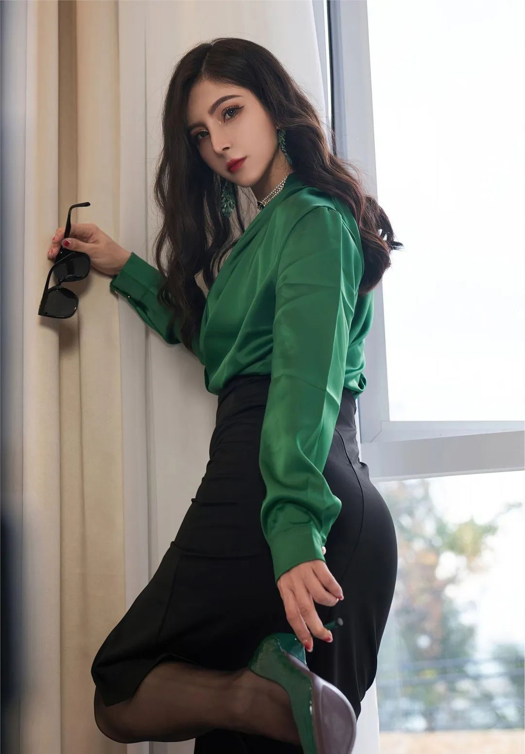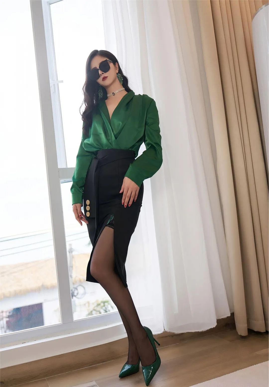 少妇私房照,黑丝高跟配墨镜,别有一番韵味