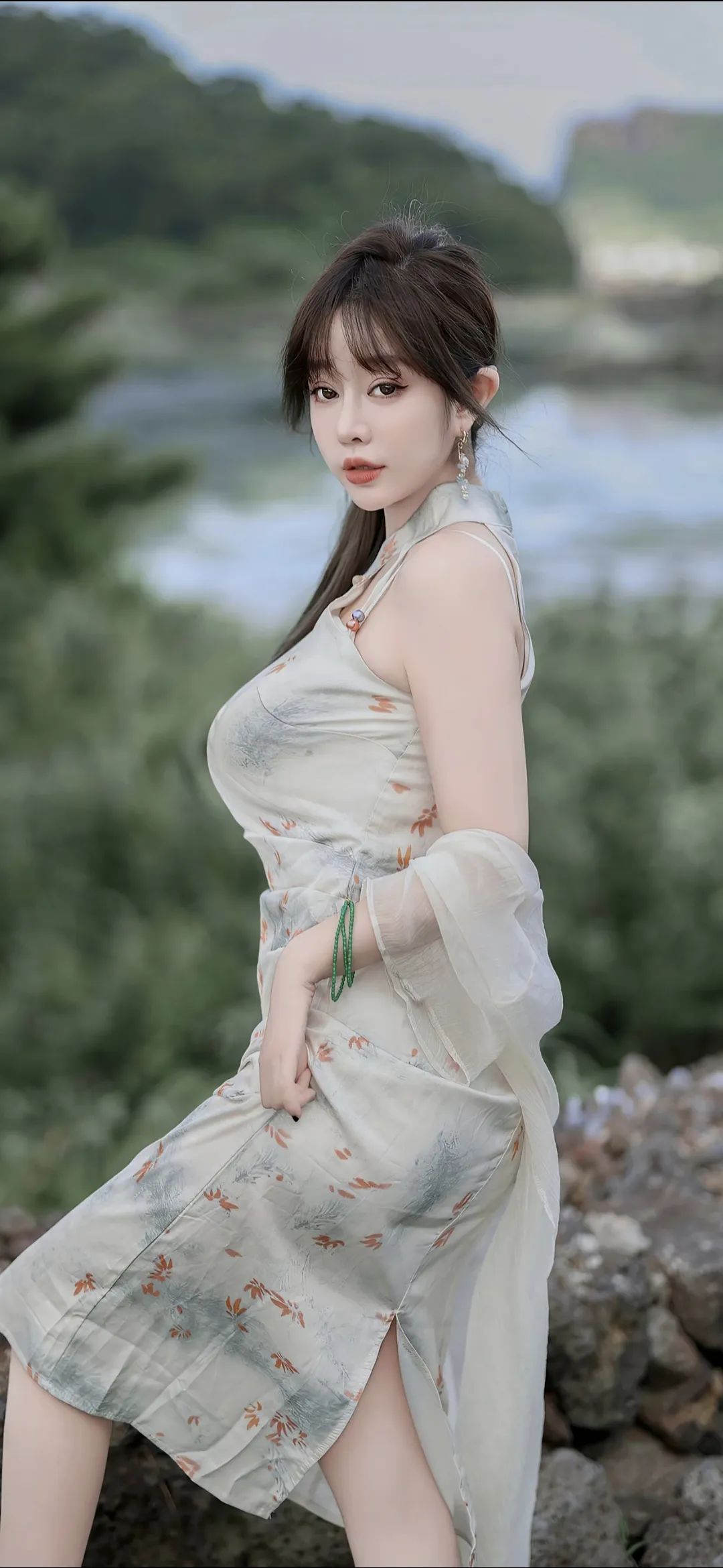 春末国风甜妹!奶白旗袍直接美…