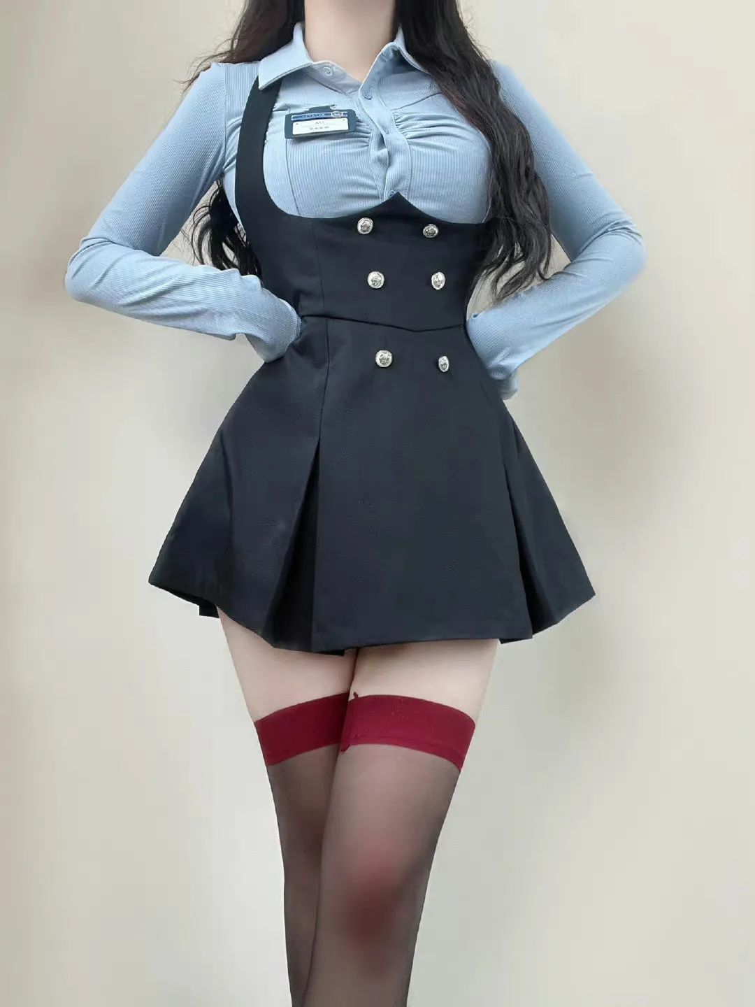 曲线的曼妙身材~~~!孙允珠立体黑鸦都市白领雪纺斜长裙