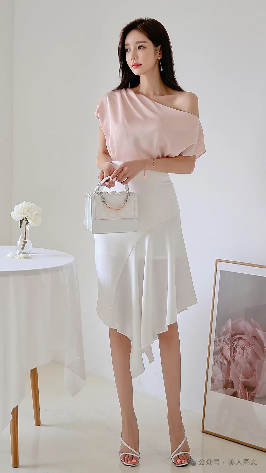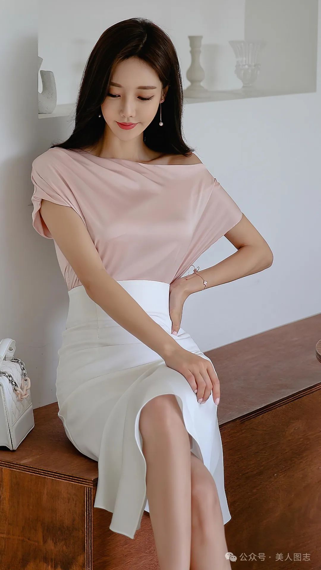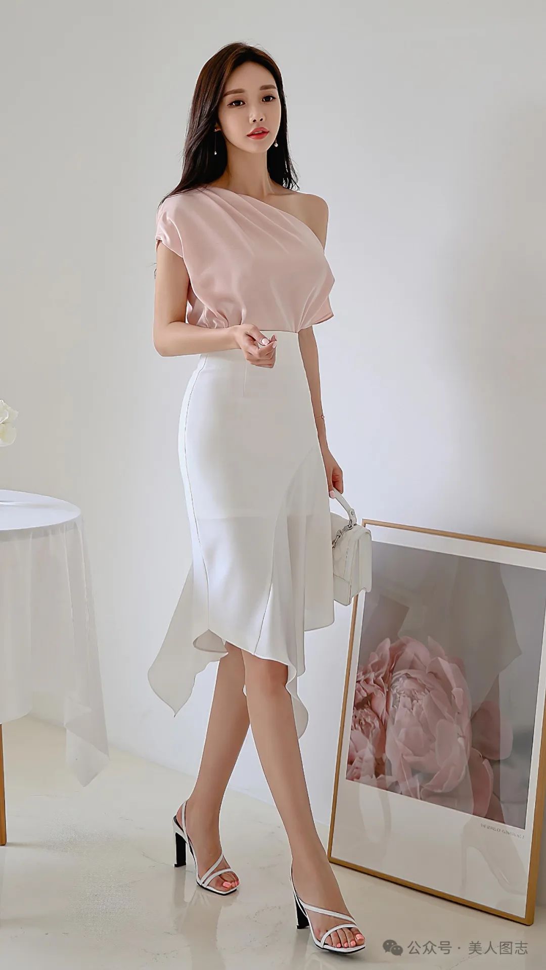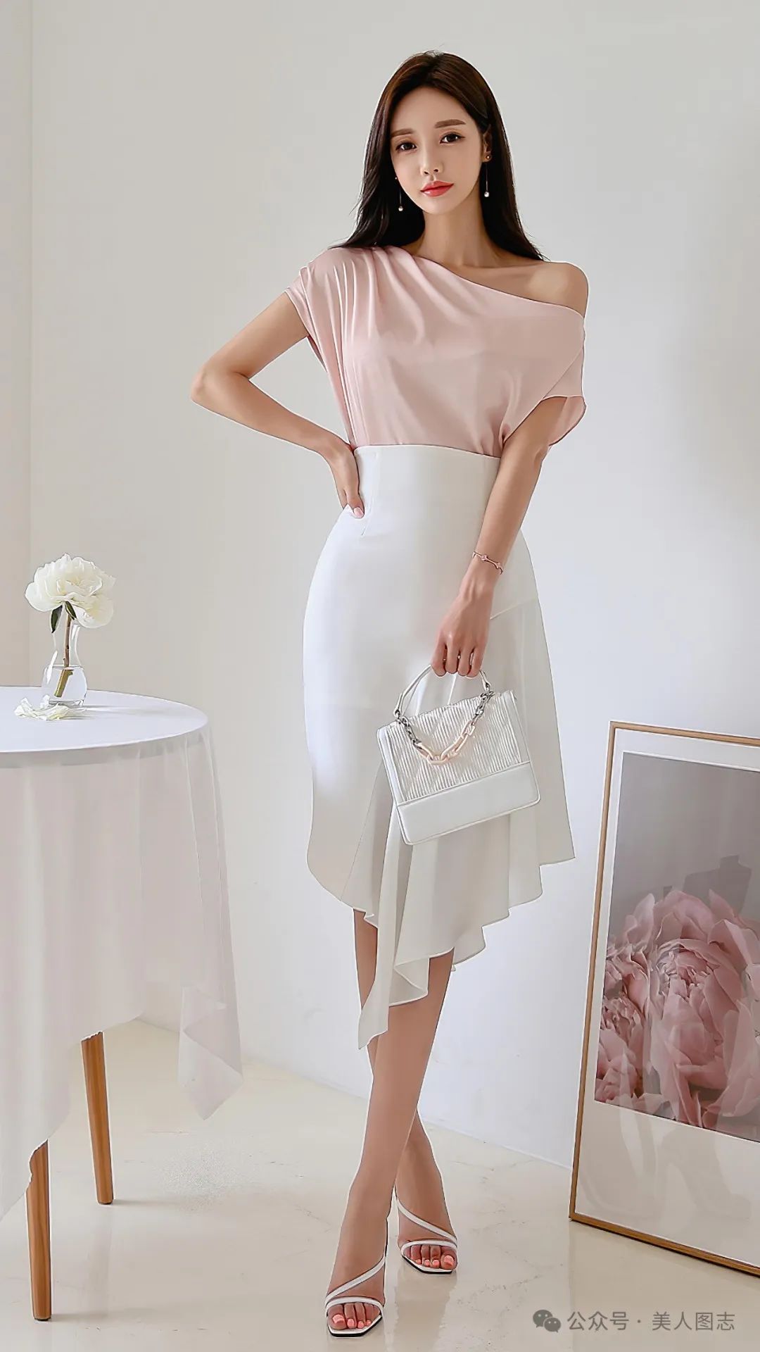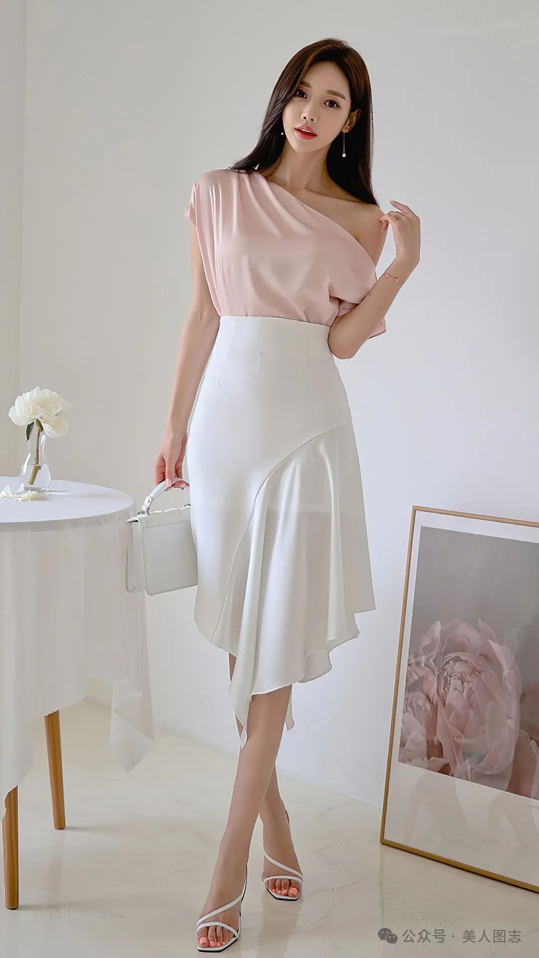 想象一下,一位女士身着一件简约而不失设计感的白色衬衫,领口微微敞开,露出精致的锁骨。衬衫下摆塞进一条高腰的黑色铅笔裙中,裙身紧贴身体曲线,展现出女性曼妙的身姿。她的双腿被一双质地优良的黑色丝袜所包裹,丝袜的光泽在灯光下若隐若现,增添了一丝诱人的神秘感。脚踩一双尖头高跟鞋,鞋跟的高度恰到好处,既显得优雅又不失舒适。