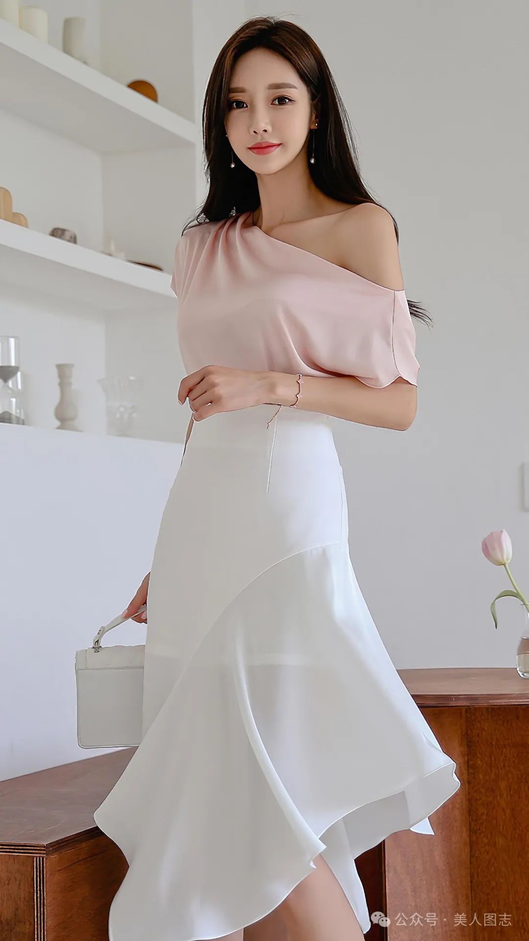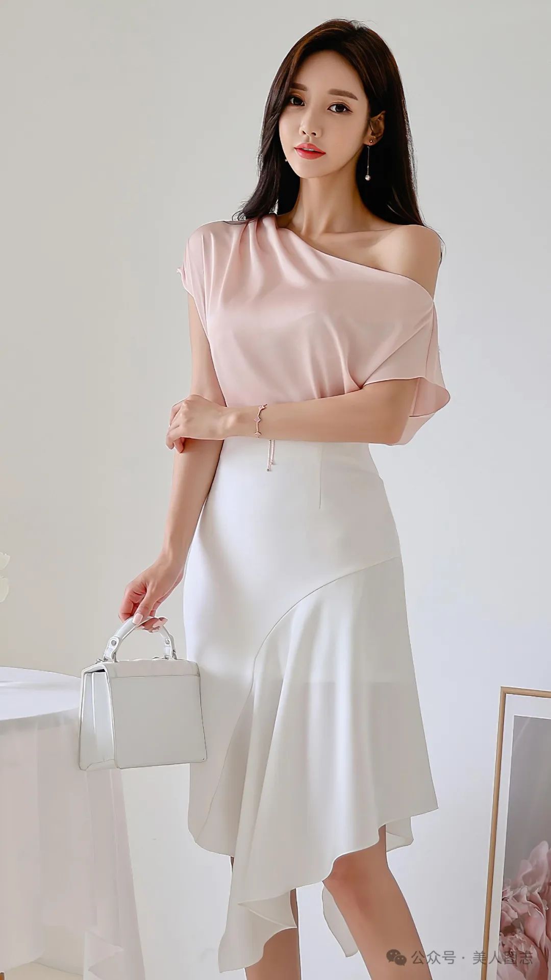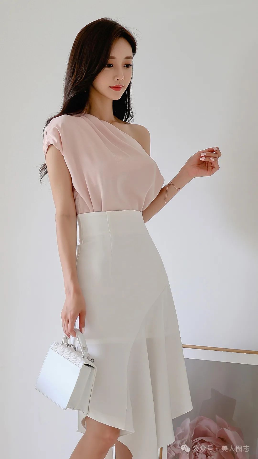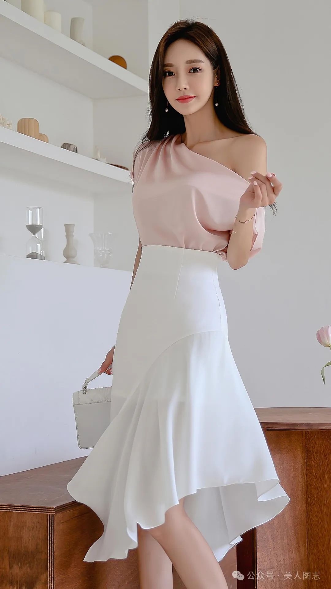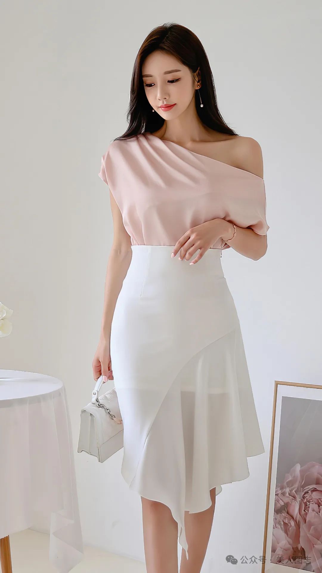 想象一下,一位女士身着一件简约而不失设计感的白色衬衫,领口微微敞开,露出精致的锁骨。衬衫下摆塞进一条高腰的黑色铅笔裙中,裙身紧贴身体曲线,展现出女性曼妙的身姿。她的双腿被一双质地优良的黑色丝袜所包裹,丝袜的光泽在灯光下若隐若现,增添了一丝诱人的神秘感。脚踩一双尖头高跟鞋,鞋跟的高度恰到好处,既显得优雅又不失舒适。
