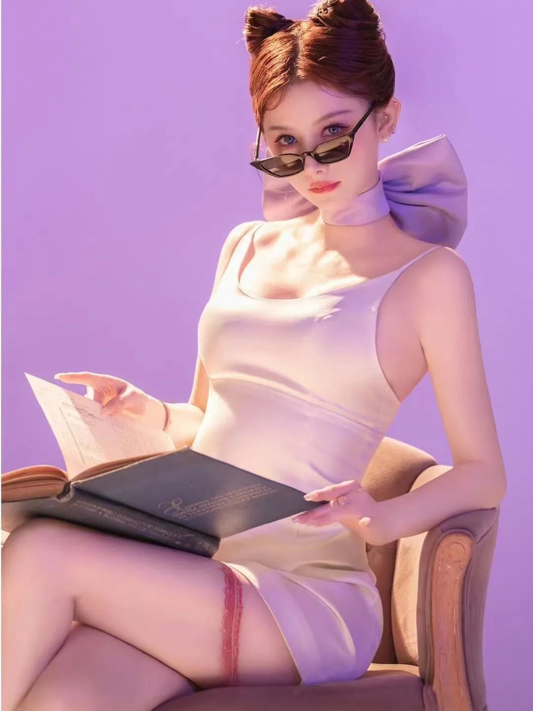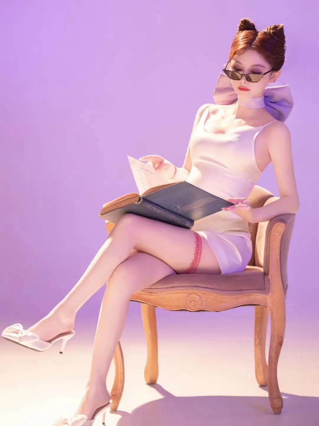 黑色波点丝袜女写真