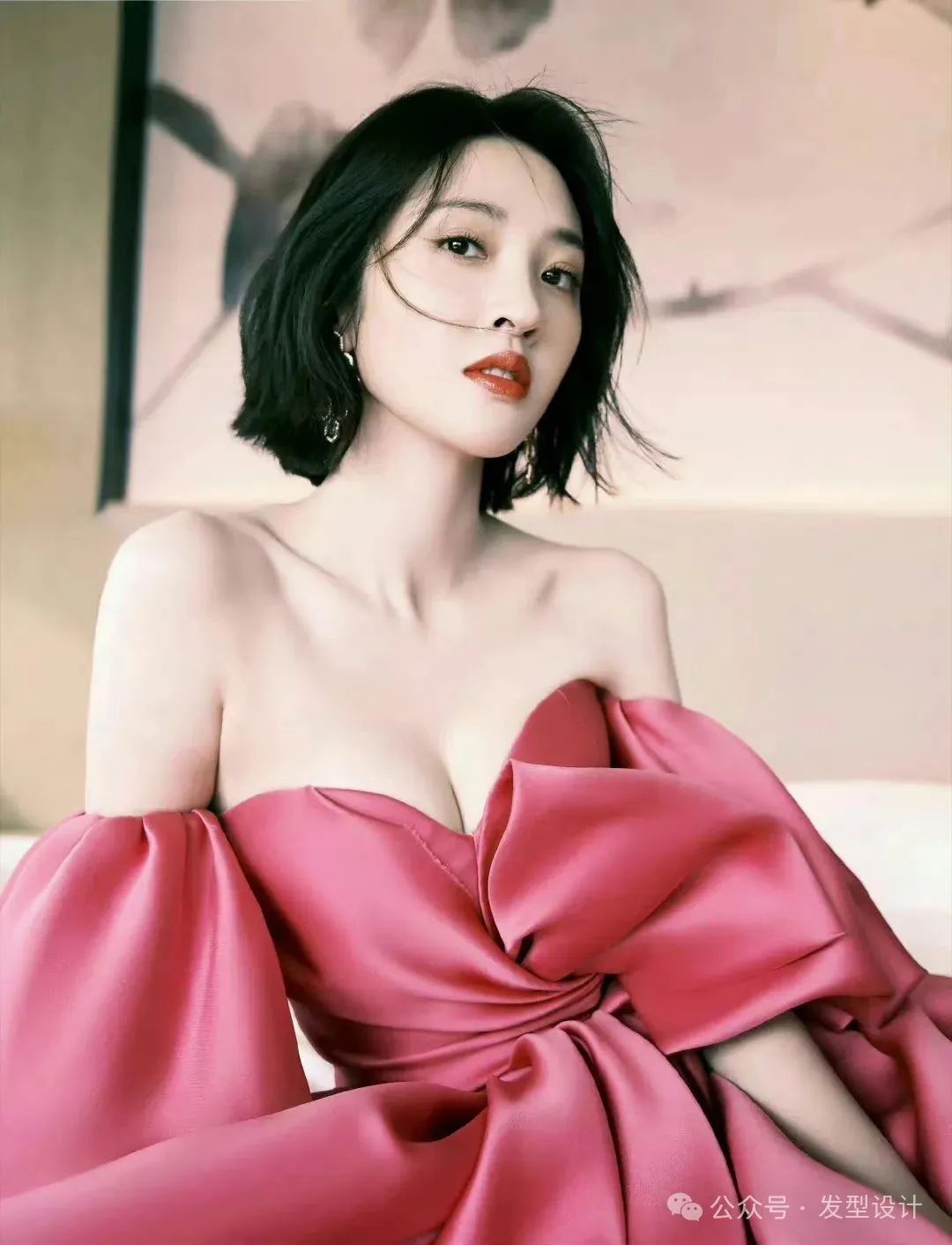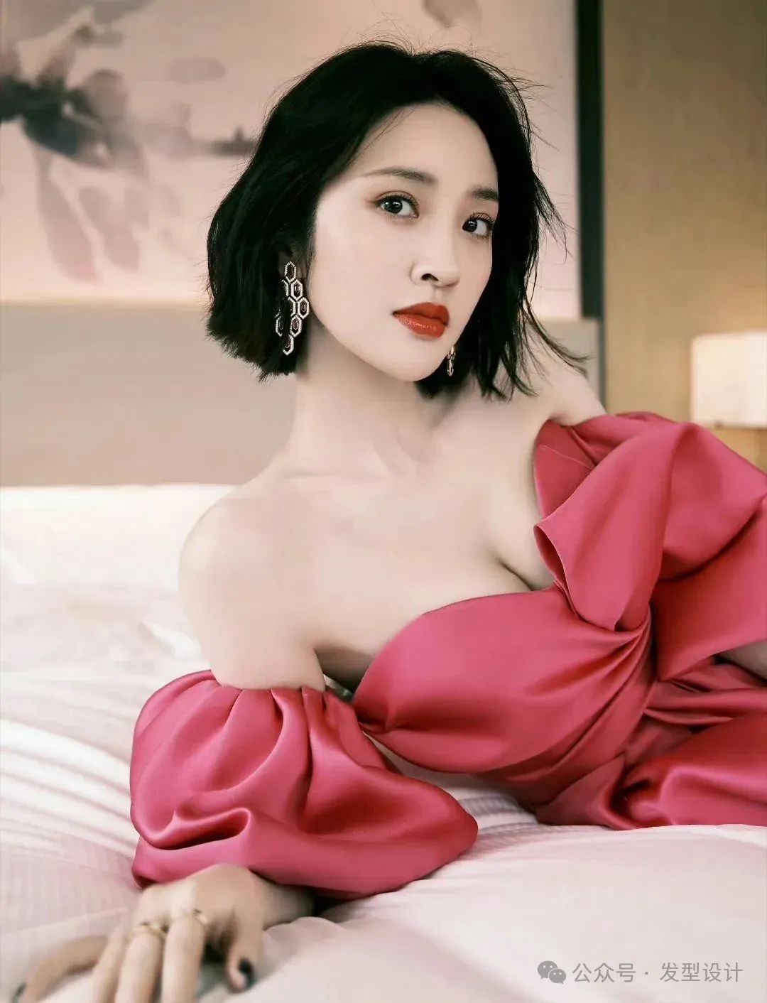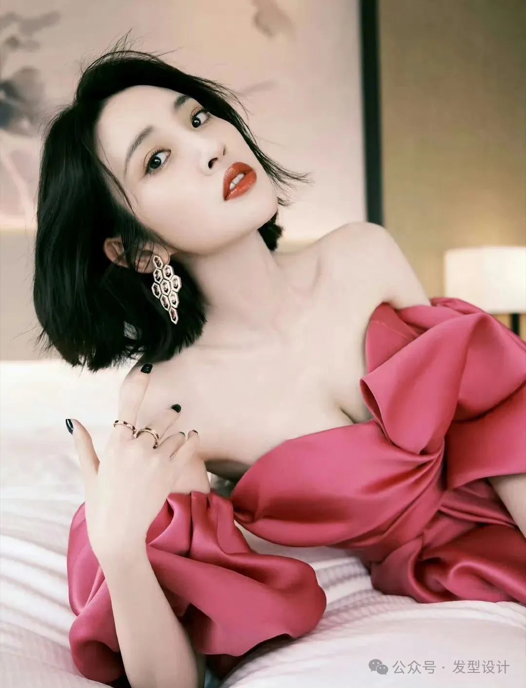 她的短发利落而时尚,为整体造型增添了一份灵动与干练。红裙的热烈与她自身的气质相互辉映,半露的香肩更是恰到好处地流露出性感与优雅。