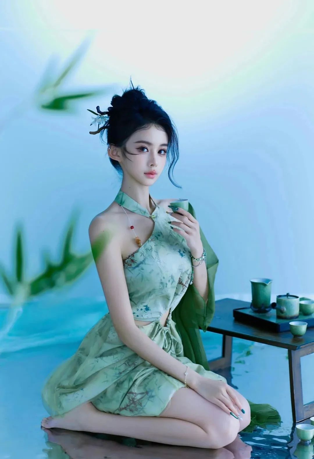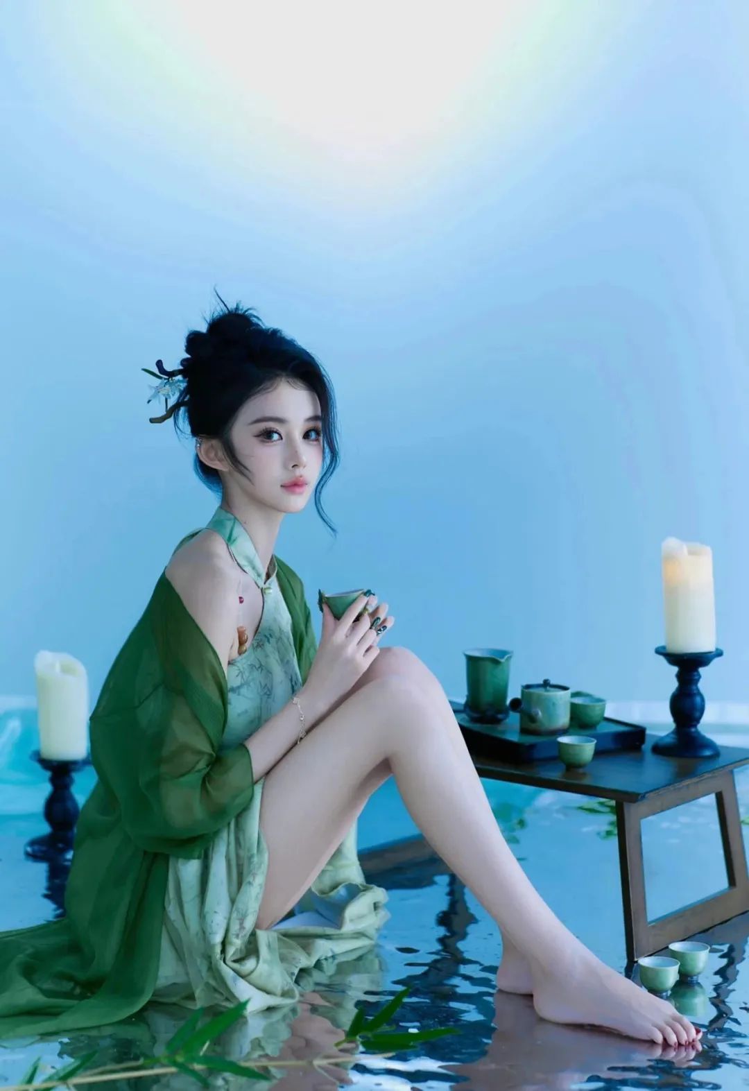 新中式网纱裙下,美腿玉足性感撩人
