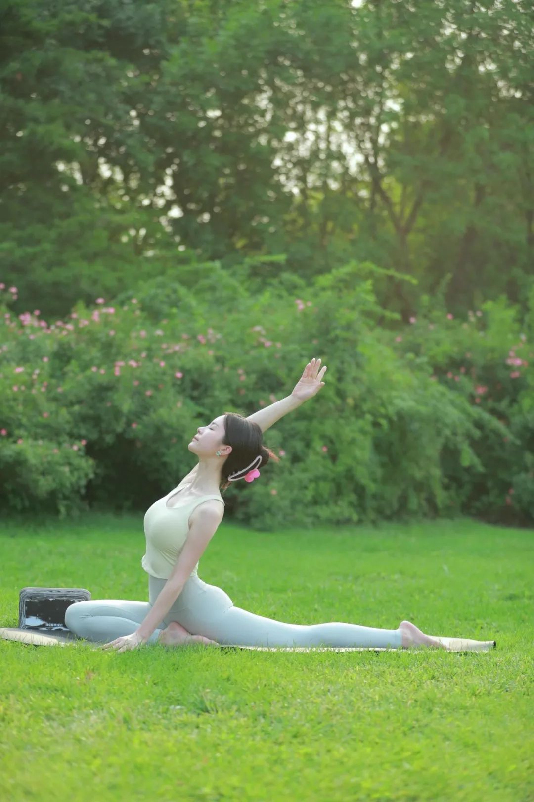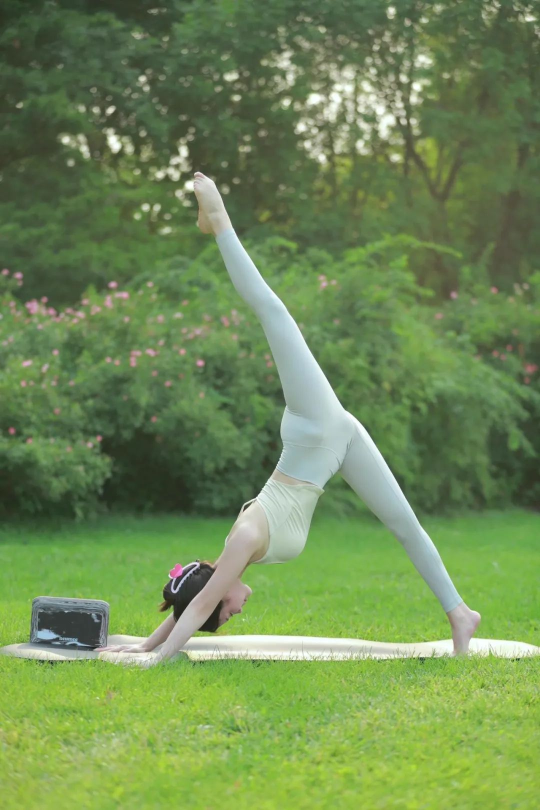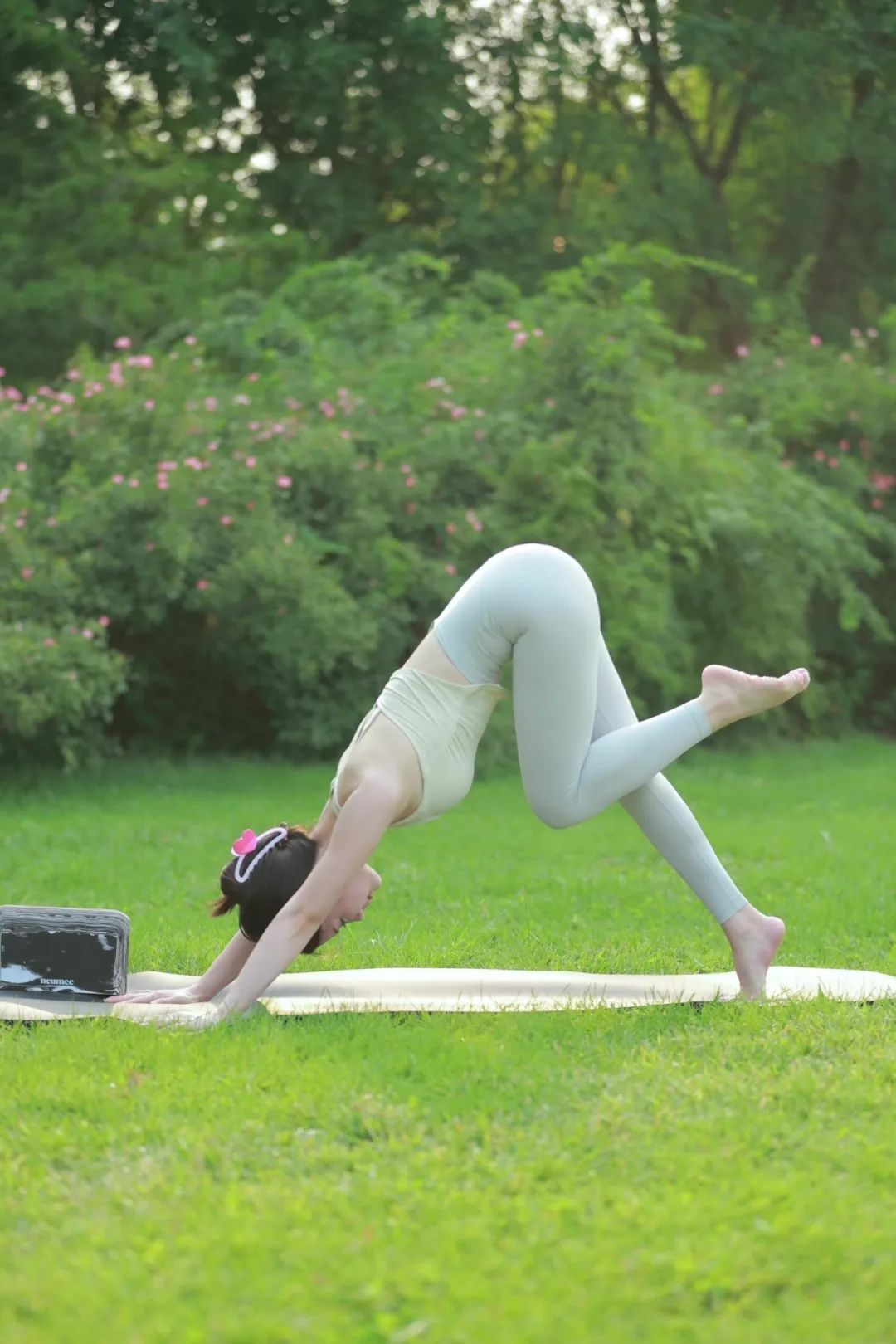 瑜伽的体式很多,它代表着生命的可能。我们不应该给生命设限,而是尽情探索可能。贴身舒适的瑜伽服饰,让练习没有阻碍。杏色运动内衣,非常时尚,搭配灰色瑜伽短裤,让人眼前一亮,时尚舒心。享受瑜伽练习,享受探索的过程。