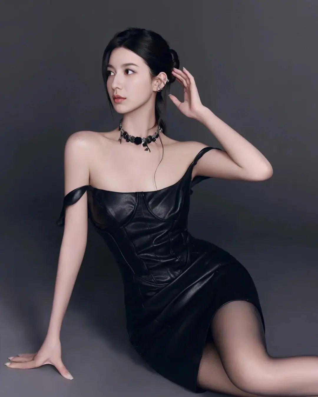 御姐写真,吊带皮裙+黑丝!纯欲风