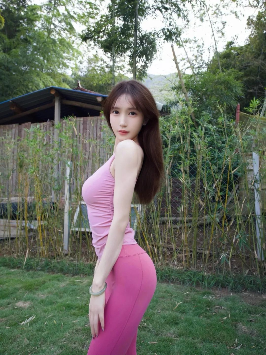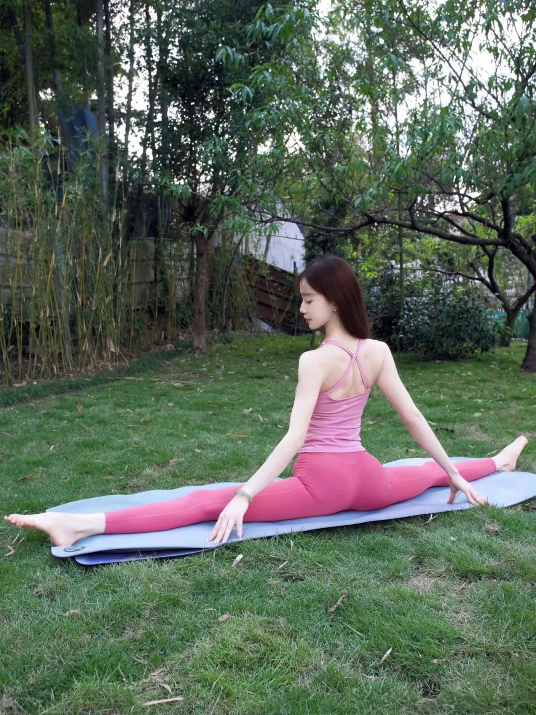 粉色运动内衣给人一种贴身浪漫的感觉,收腰设计,凸显小蛮腰。搭配玫红色的瑜伽裤,整体颜色浪漫清晰,却不单调,由浅入深的过渡颜色,让整体更有层次感。柔软舒适的面料,让练习没有束缚,自由探索体式。诠释运动小姐姐的优雅与性感。婀娜多姿好身材,迷人曲线,这就是属于运动女性的魅力。