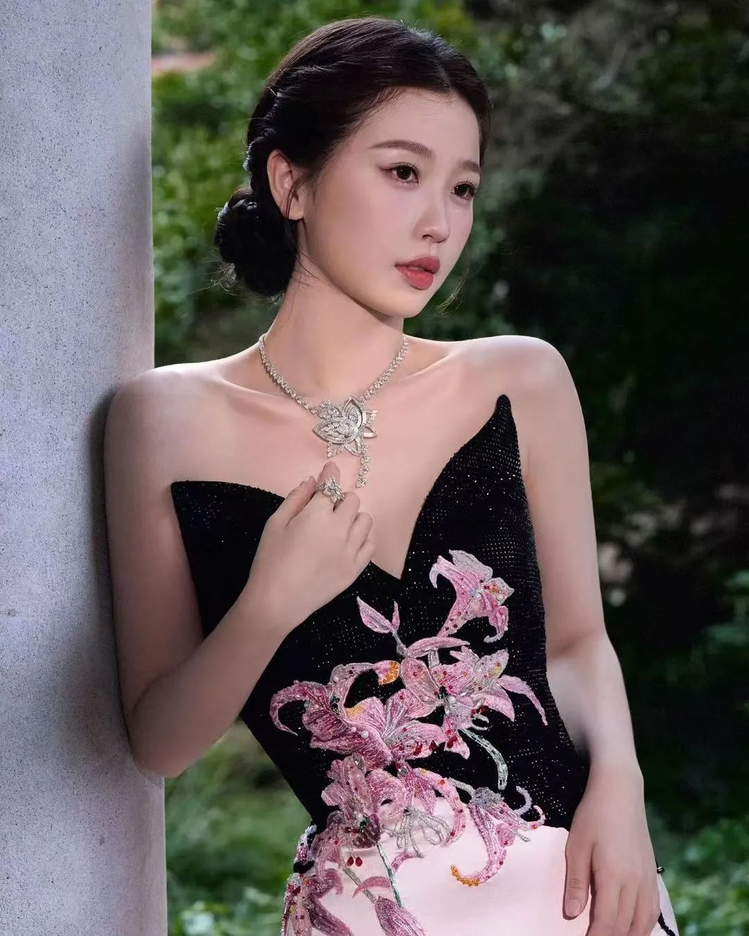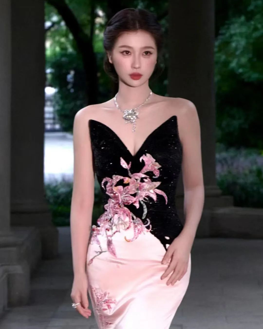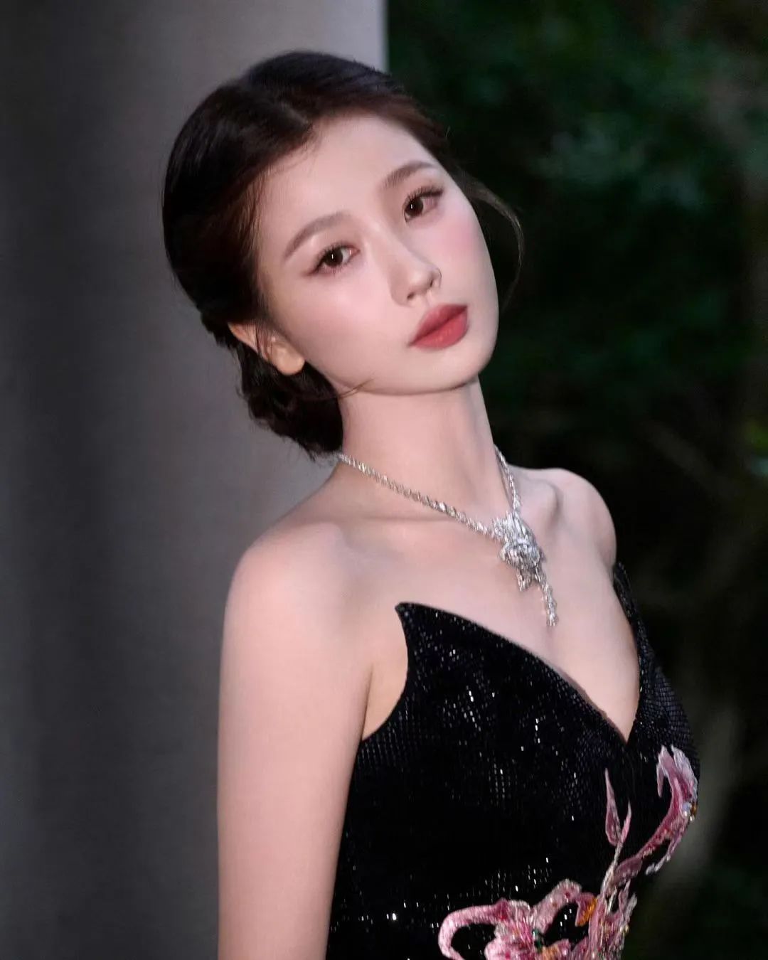 在配饰方面,虞书欣选择了一条银色珠宝项链和耳环,这些精致的饰品不仅提升了整体造型的质感,还恰到好处地衬托出她白皙的皮肤和优雅的气质。无论是站立还是侧身,她都展现出了自信和从容,仿佛整个世界都在为她让路。