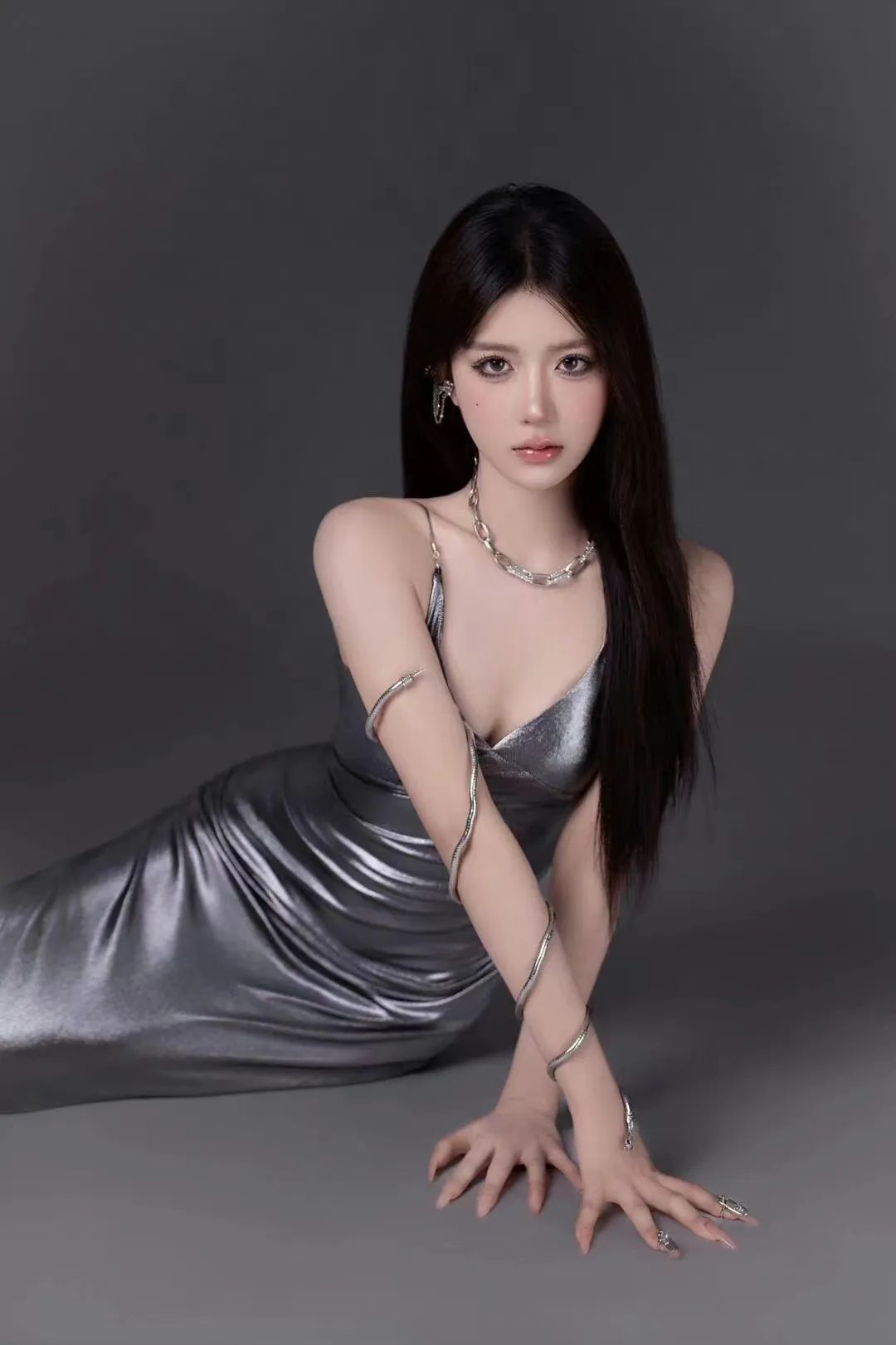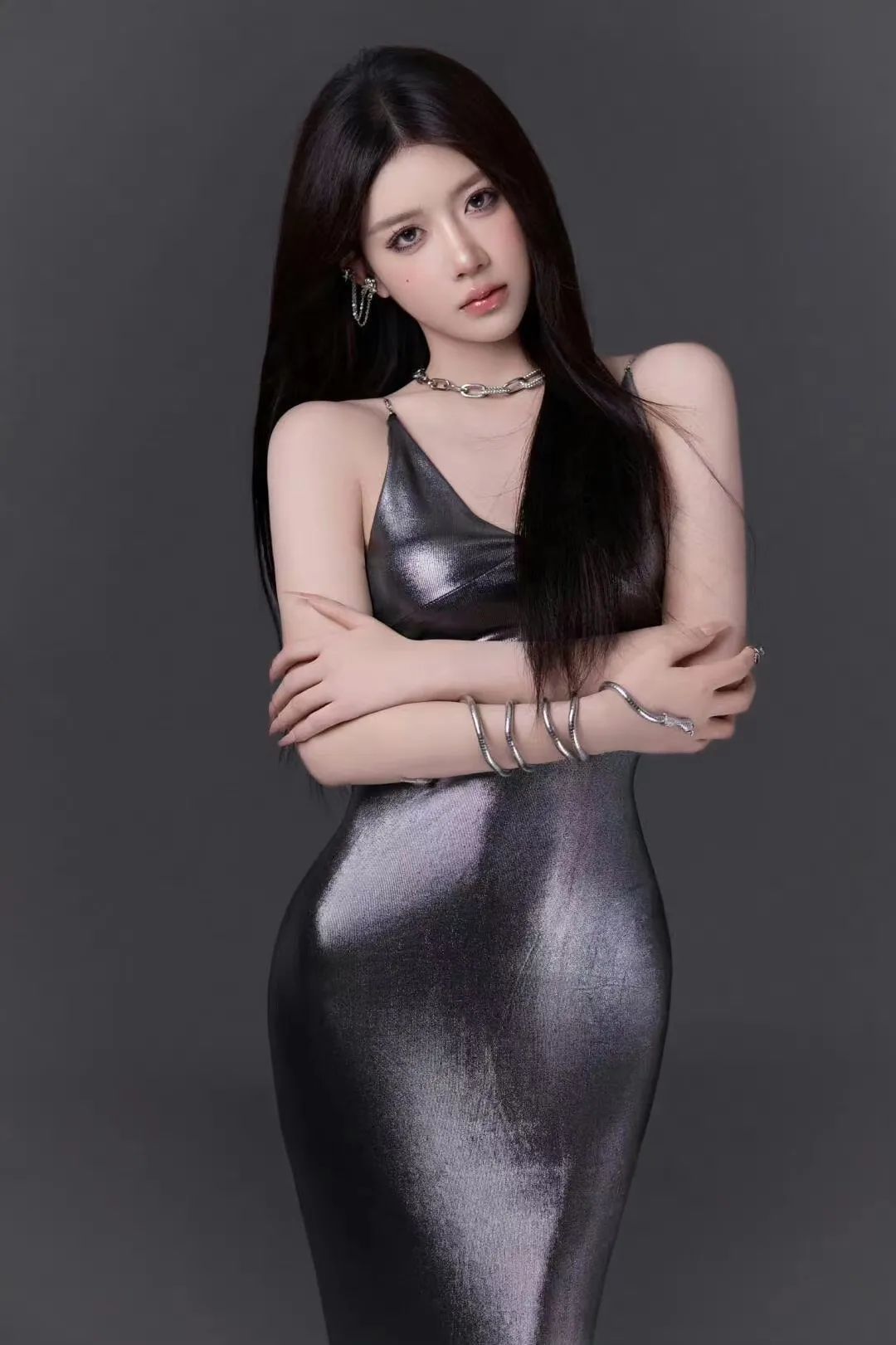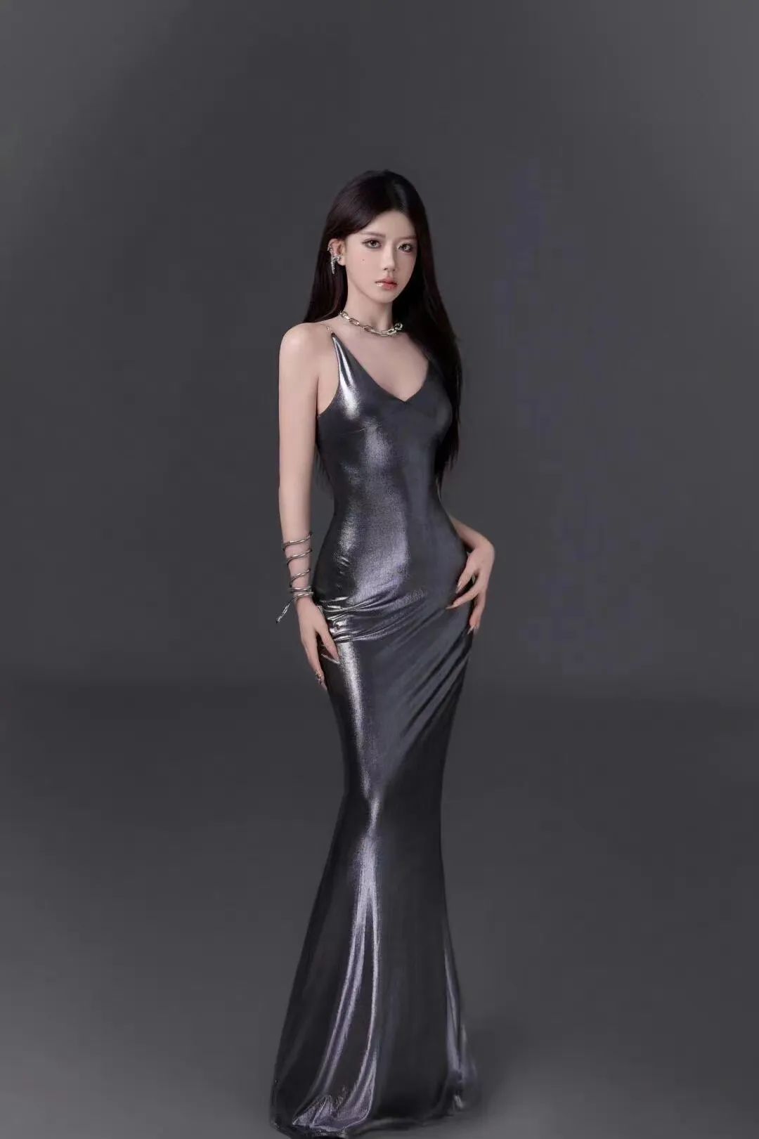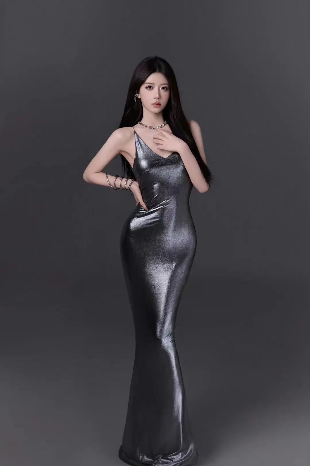 液态金属吊带连衣裙写真