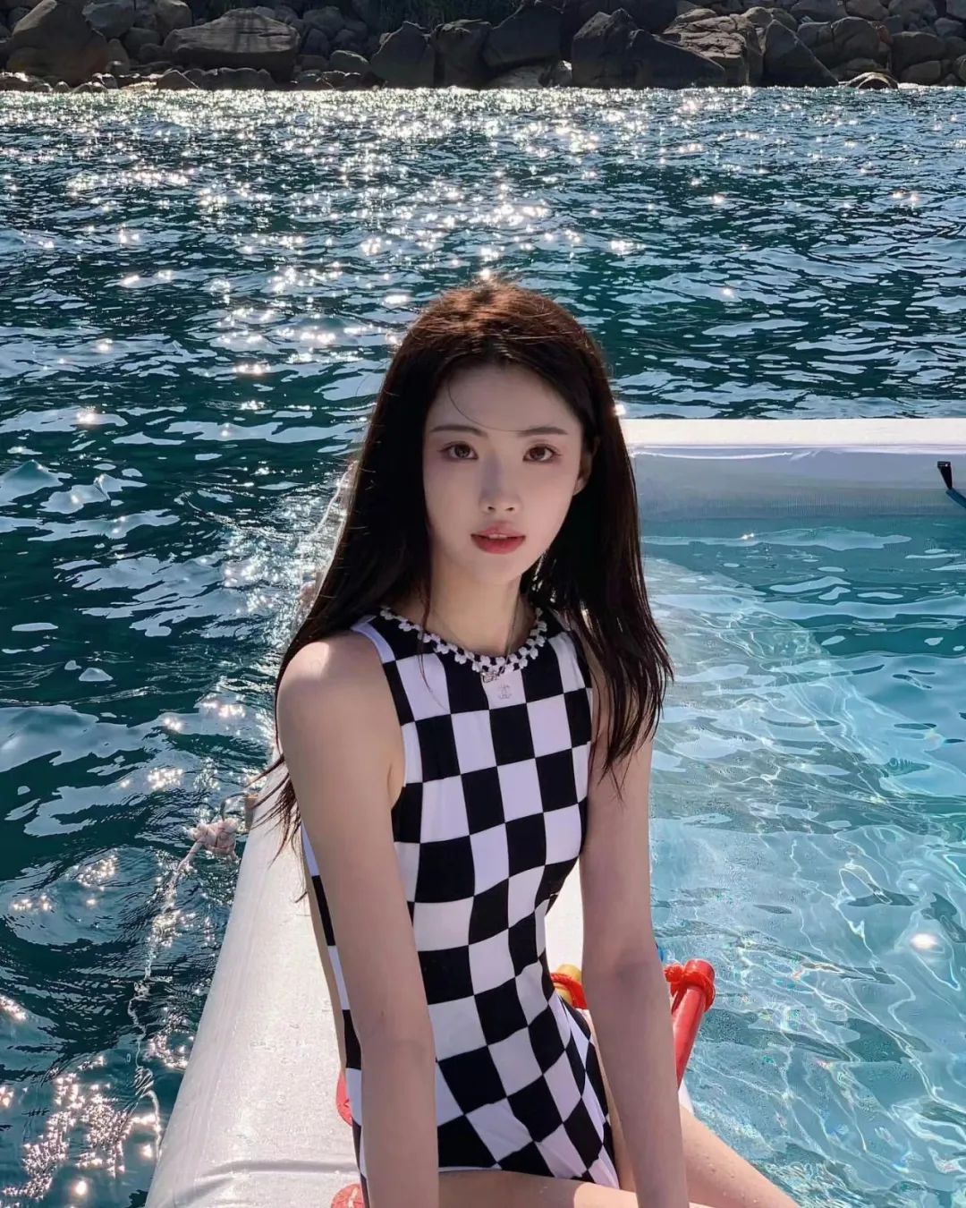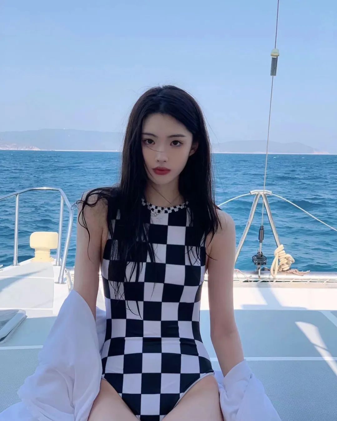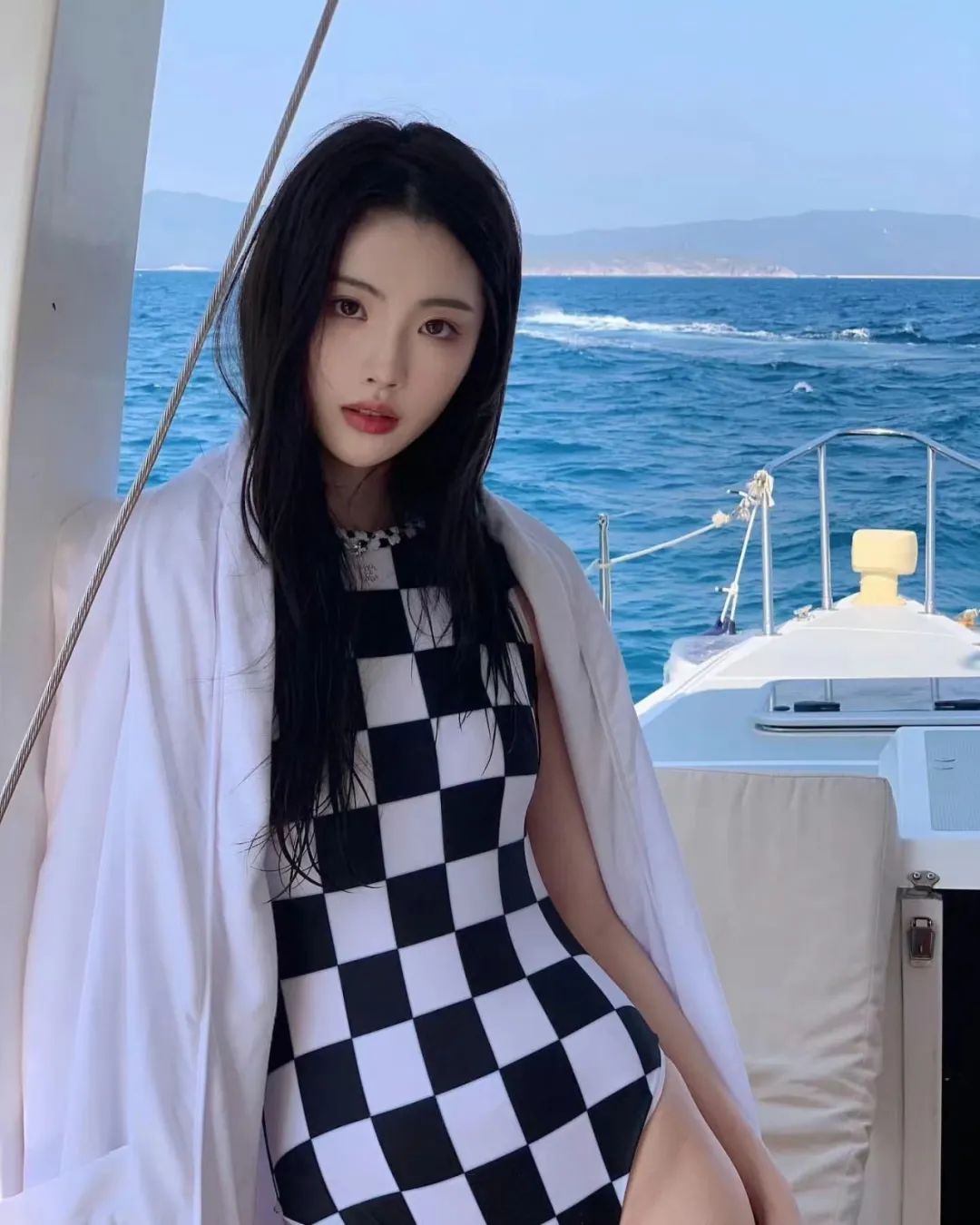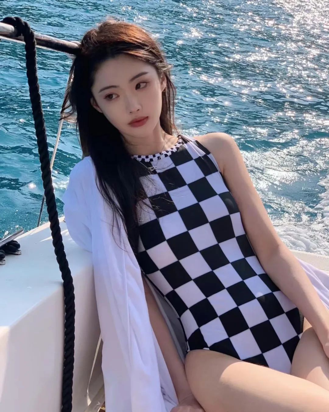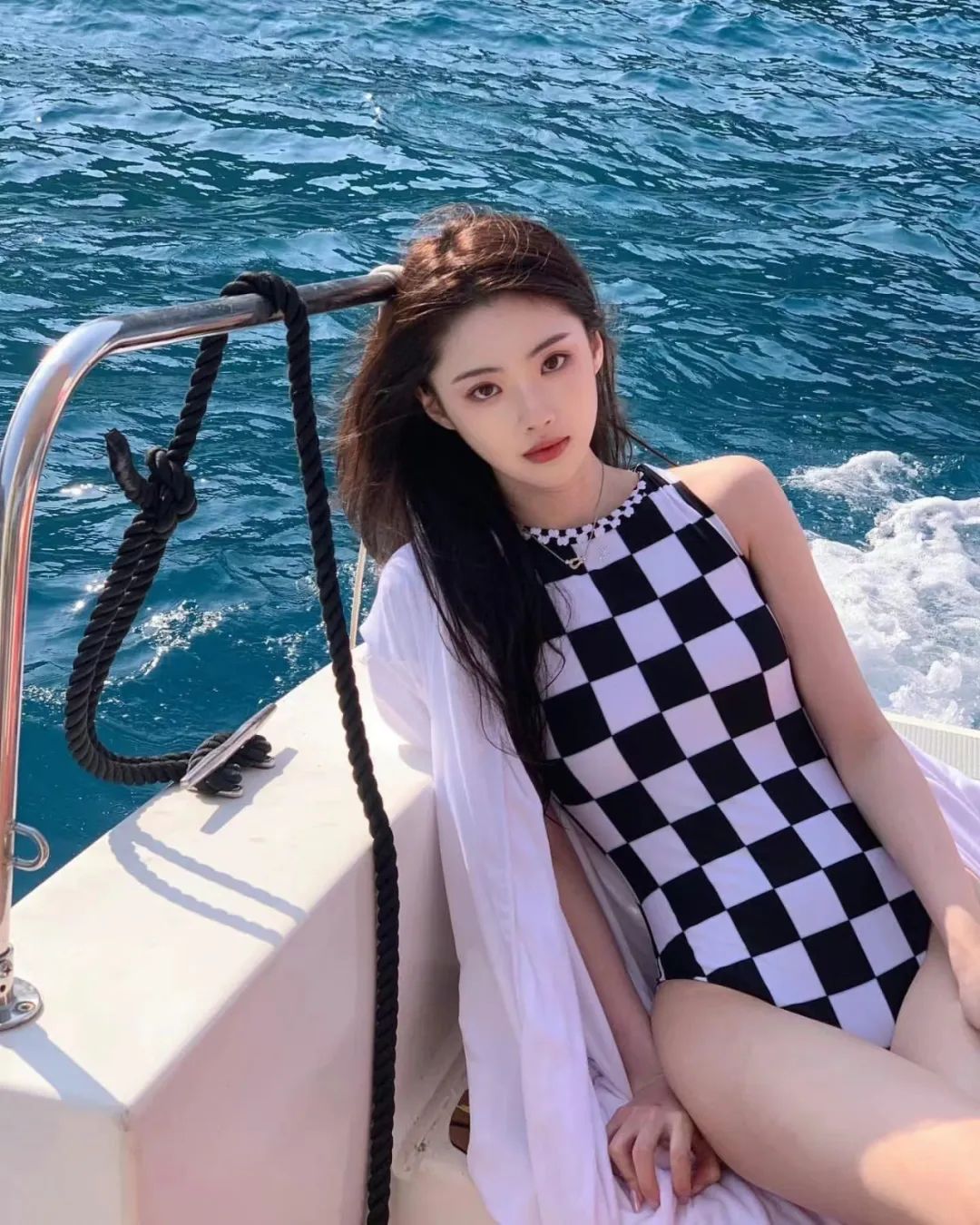 游艇美女连体衣写真