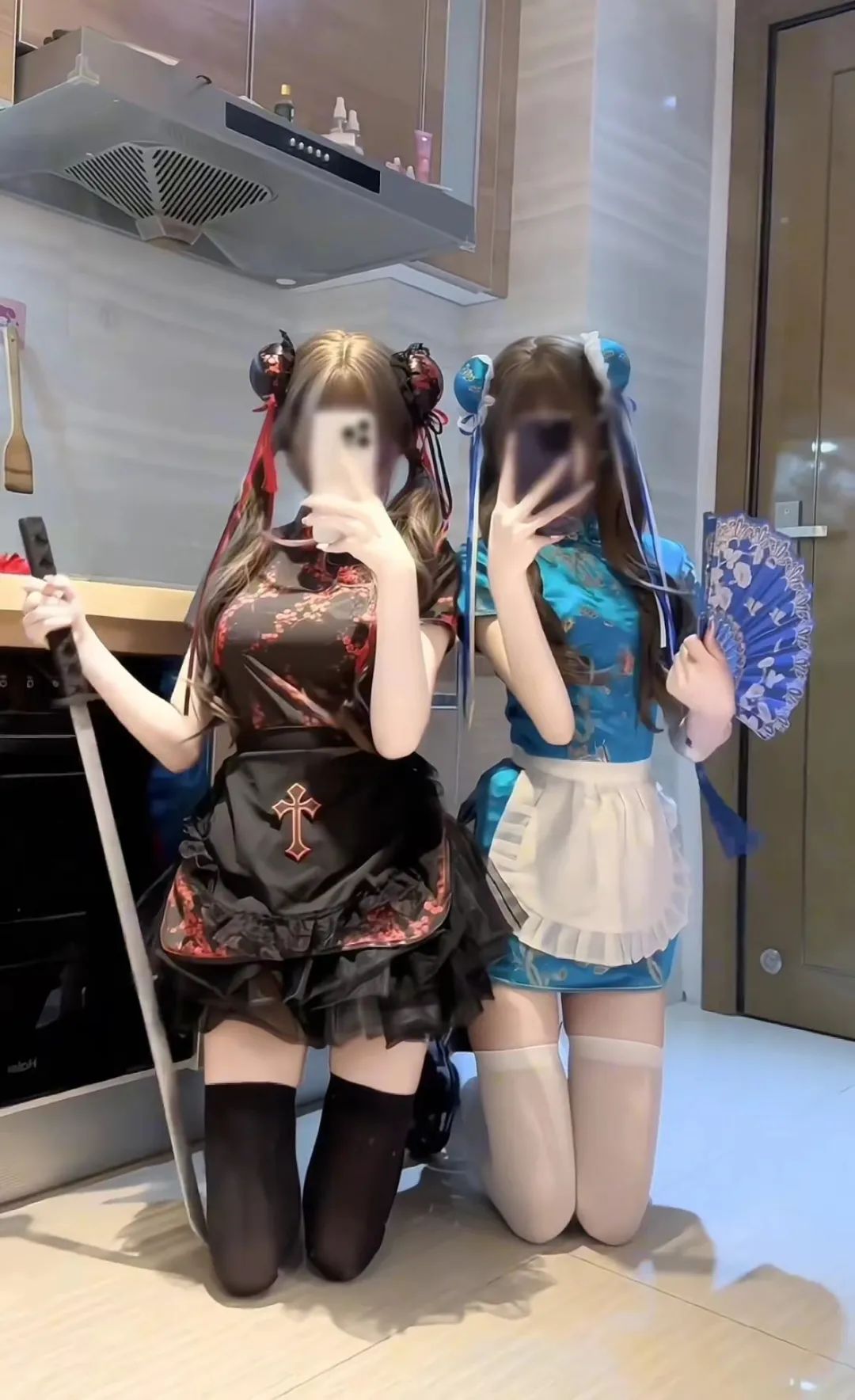 颜值cos:黑丝白丝的姐妹花,旗袍装太好看了