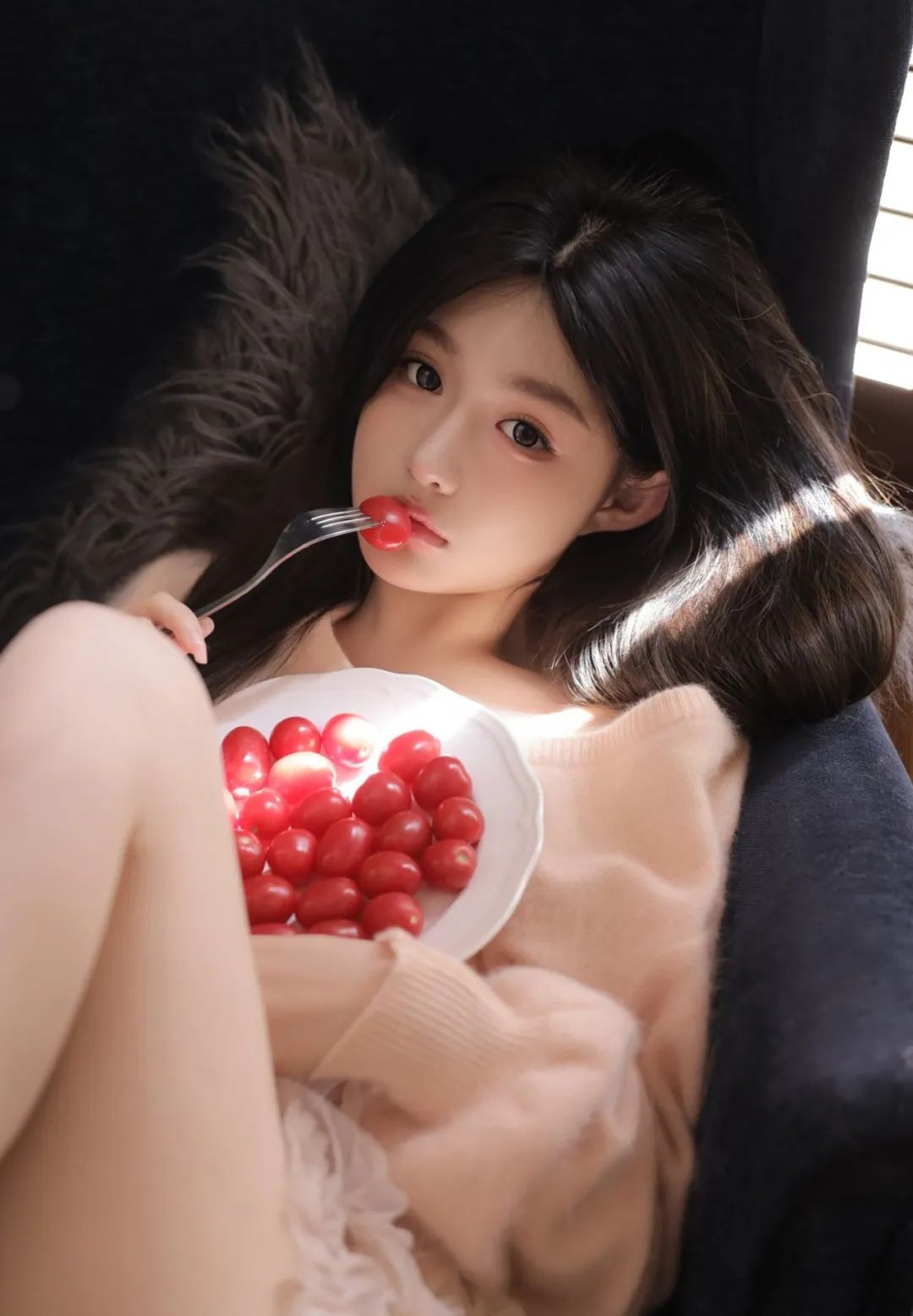你的描述如同一篇生动的散文,细腻地描绘出了一个宁静而美好的瞬间。你巧妙地运用了丰富的感官细节,如阳光的金色丝带、小番茄的光滑表皮和酸甜汁液,让读者仿佛亲临其境,感受到那份温暖与惬意。