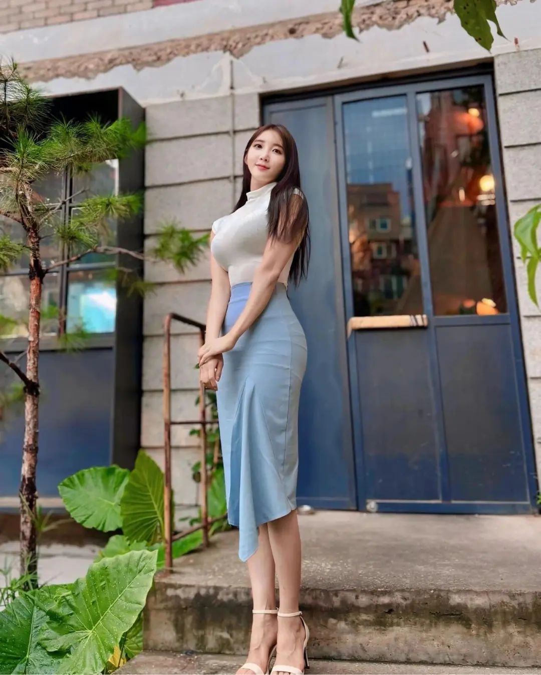 她拥有曼妙的身姿曲线,高挑结实、上围丰满圆润。